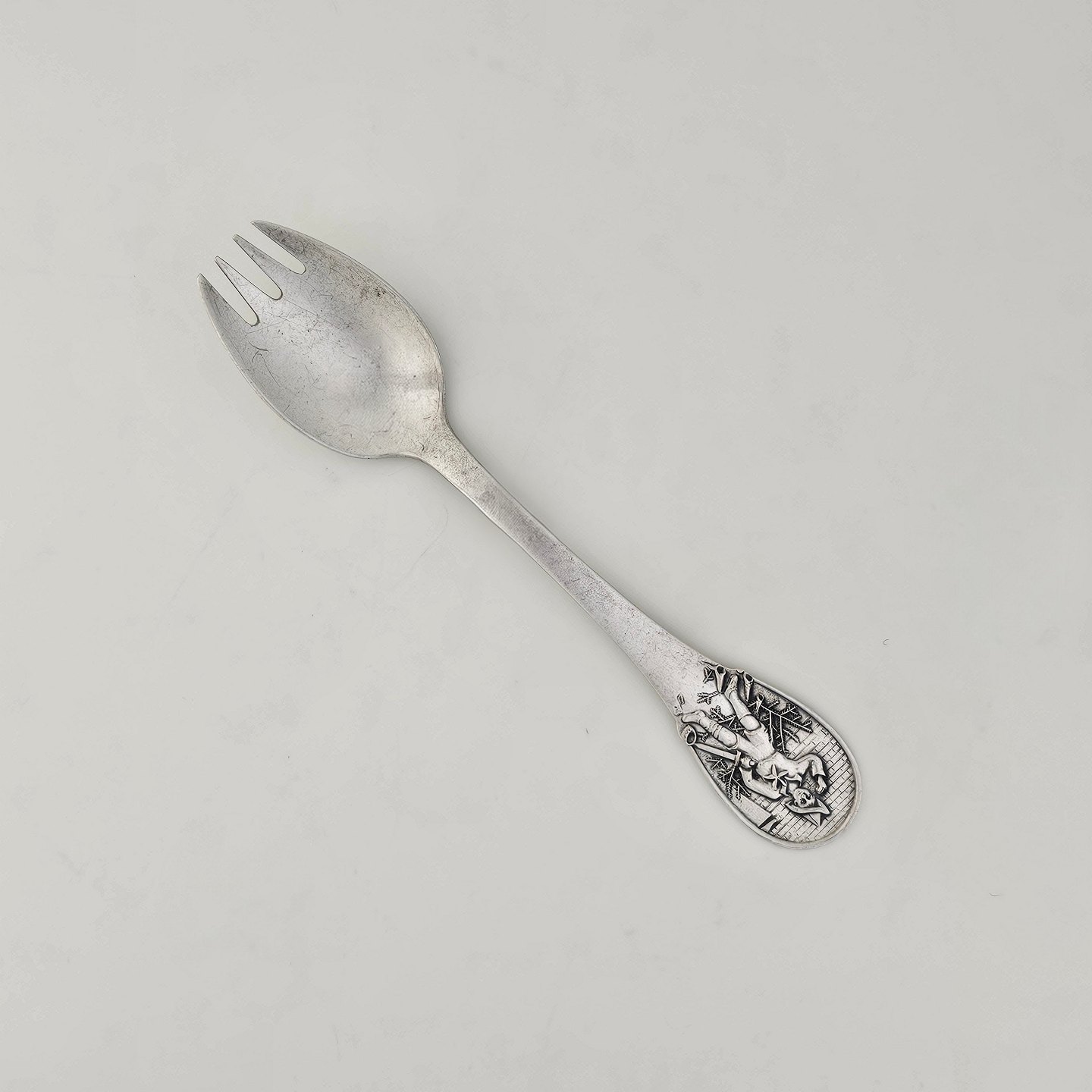 H.C. Andersen barnegaffel i sølv med motiv fra eventyret Grantræet