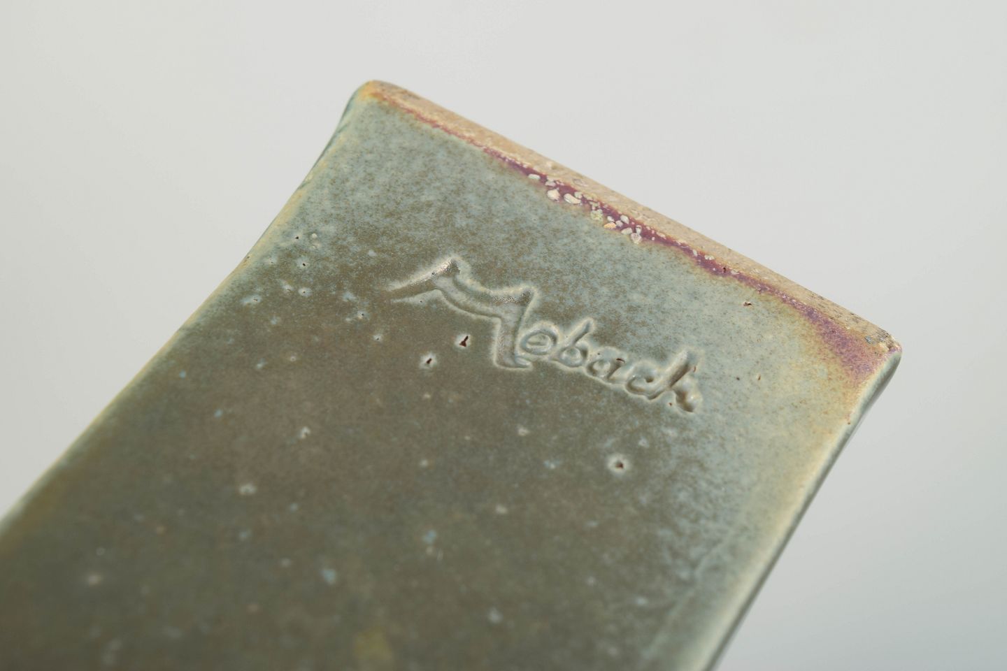 Mobach Keramiek of Utrecht, founded in 1895, is renowned for handmade studio ceramics distinguished by expressive glazes and modernist forms. Much of the 1960s–70s production reflects a sculptural, almost architectural approach, making these pieces highly collectible today.