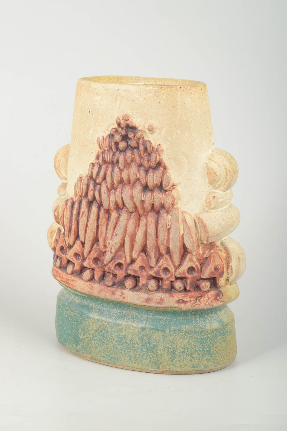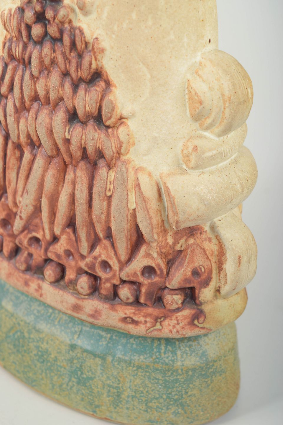 Sculptural hand-glazed stoneware vase, characteristic of Rooke’s organic vocabulary with bold relief modelling and a highly tactile surface.