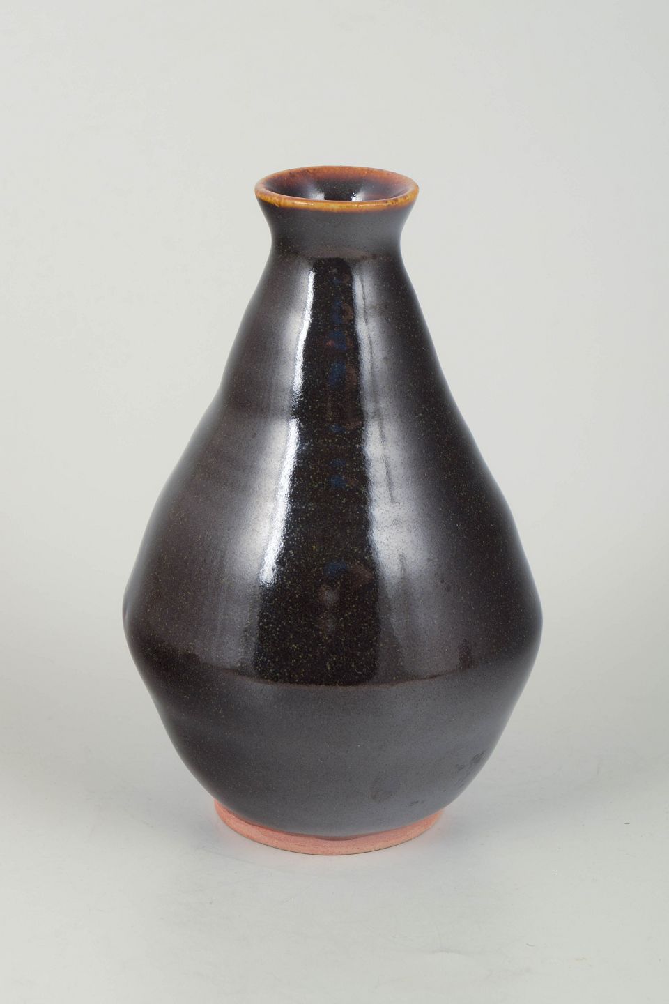 Helene Søs Schjødts for L. Hjorth, Bornholm.Hand-thrown stoneware vase with an elegant, tapering profile, finished in a deep dark glaze with subtle surface variation. A fine example of Bornholm ceramic tradition, where craftsmanship and simple, balanced forms define the aesthetic.