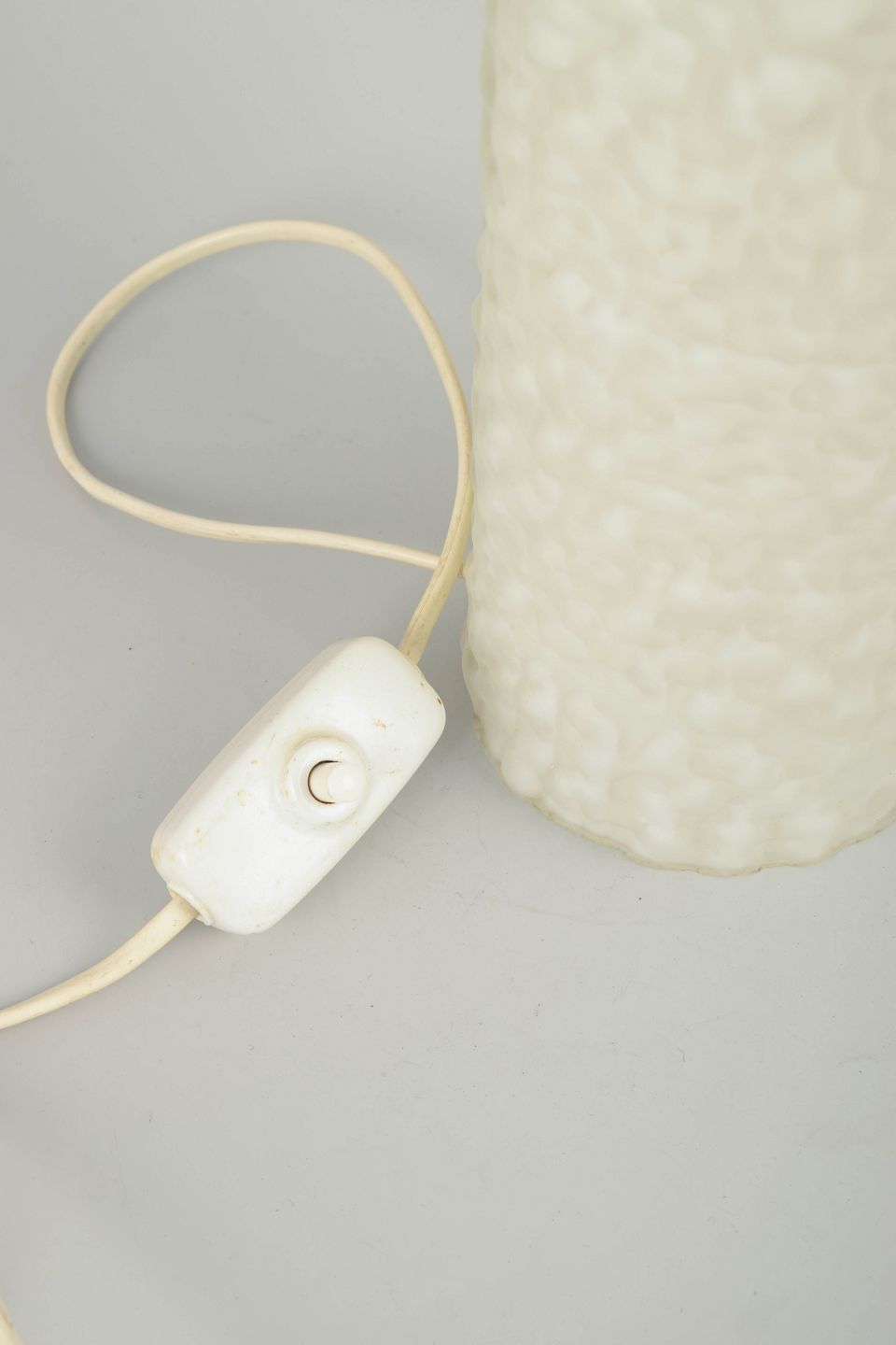 Swedish design – glass and brass table lamp, 1970sElegant table lamp in textured white pressed glass with a cylindrical brass top. Original approx. 2-metre cord. A characteristic example of 1970s Scandinavian lighting with a refined contrast between materials.