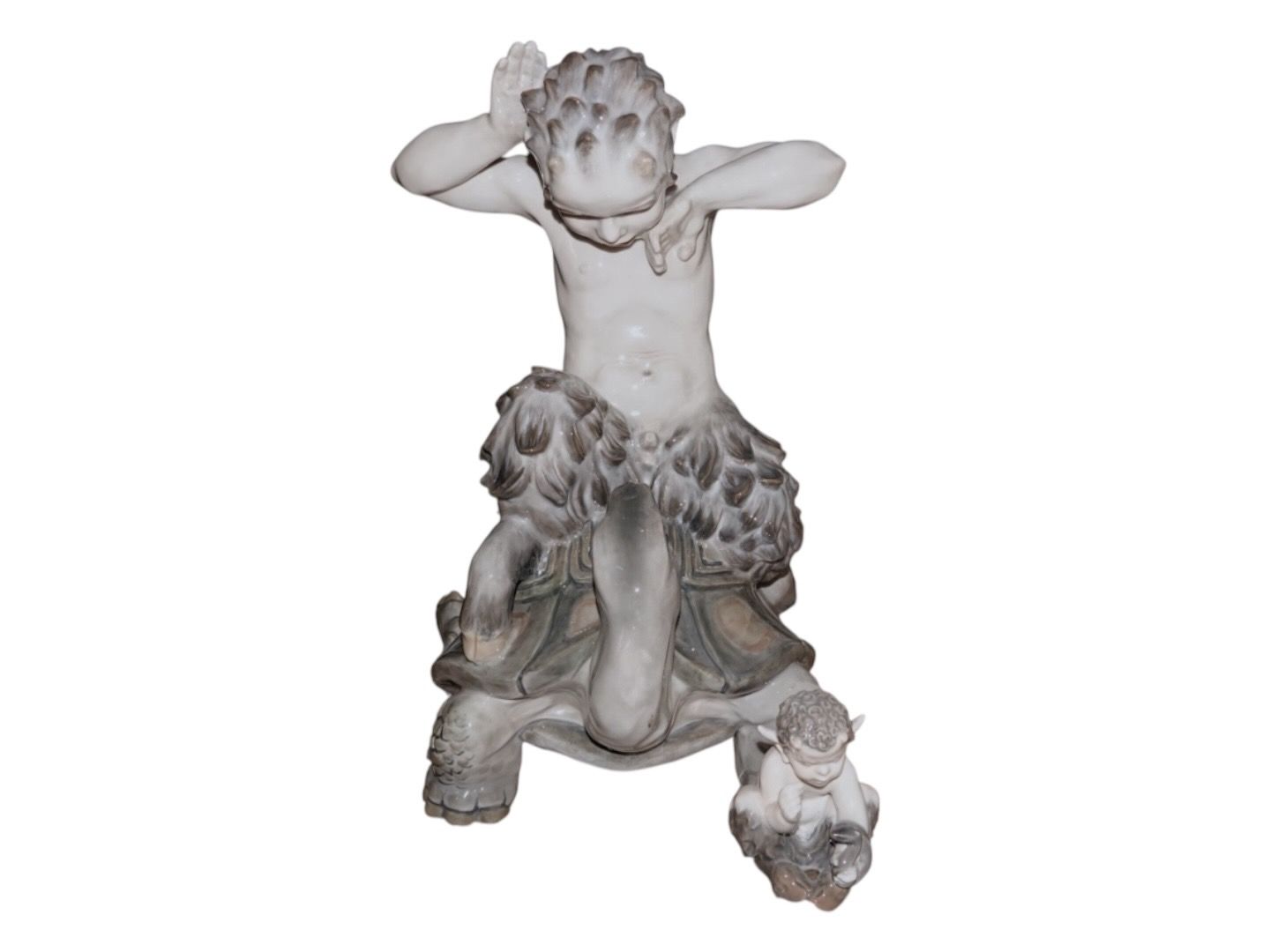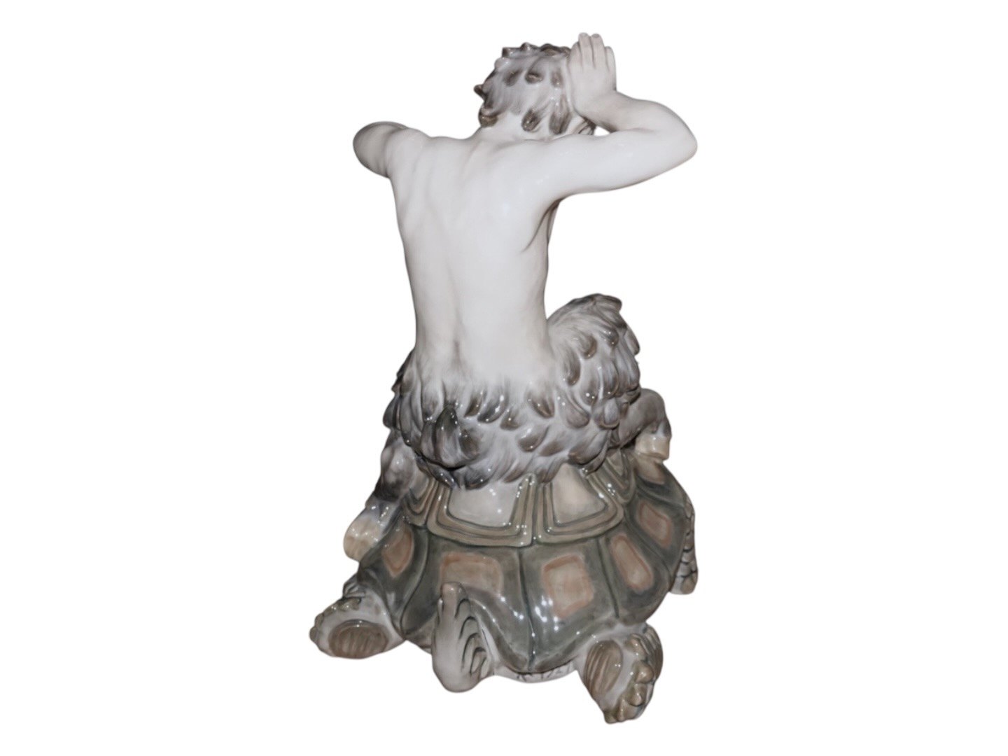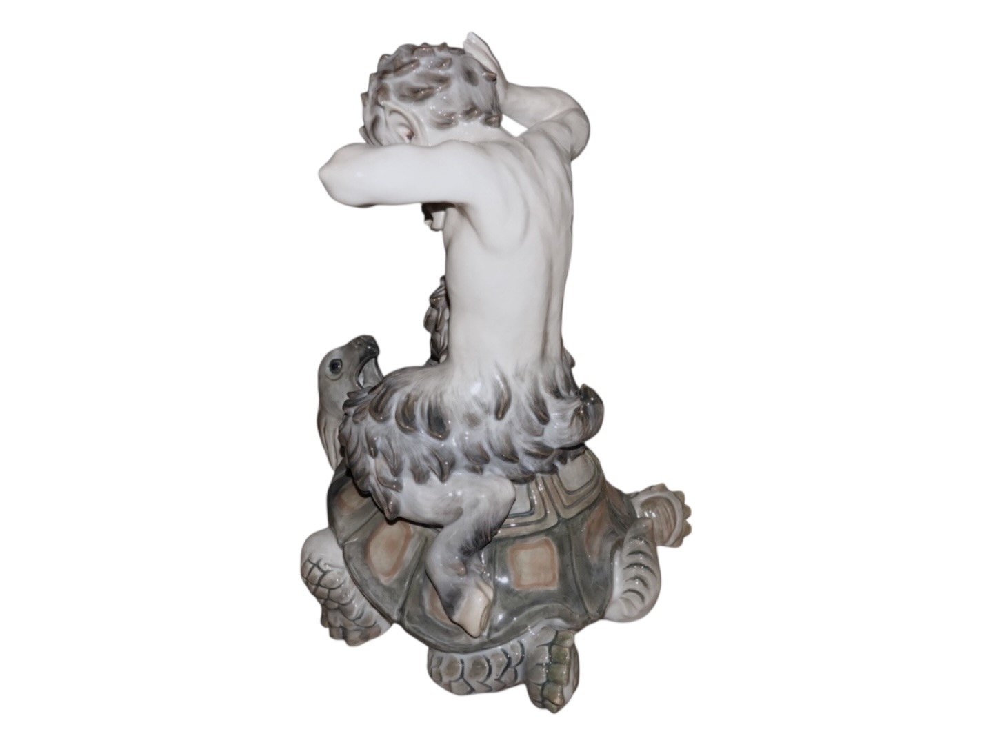 Very rare and enormous Royal Copenhagen figurine, Faun fighting a turtle. On the first picture you can see a "normal" faun figurine to compare the size.The factory mark tells, that this was produced between 1923 and 1928.