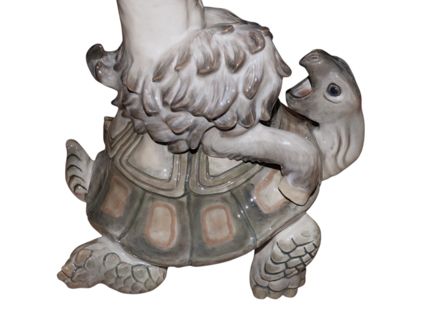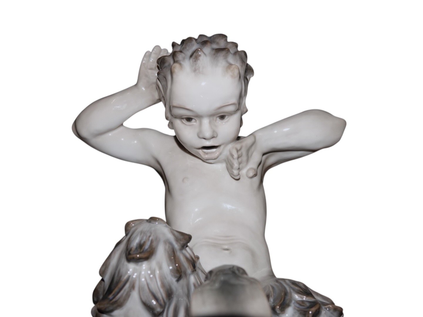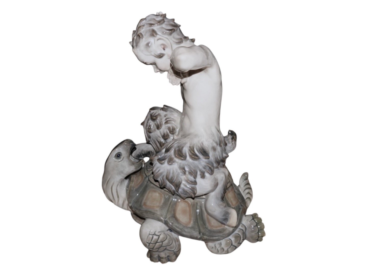 Very rare and enormous Royal Copenhagen figurine, Faun fighting a turtle. On the first picture you can see a "normal" faun figurine to compare the size.The factory mark tells, that this was produced between 1923 and 1928.