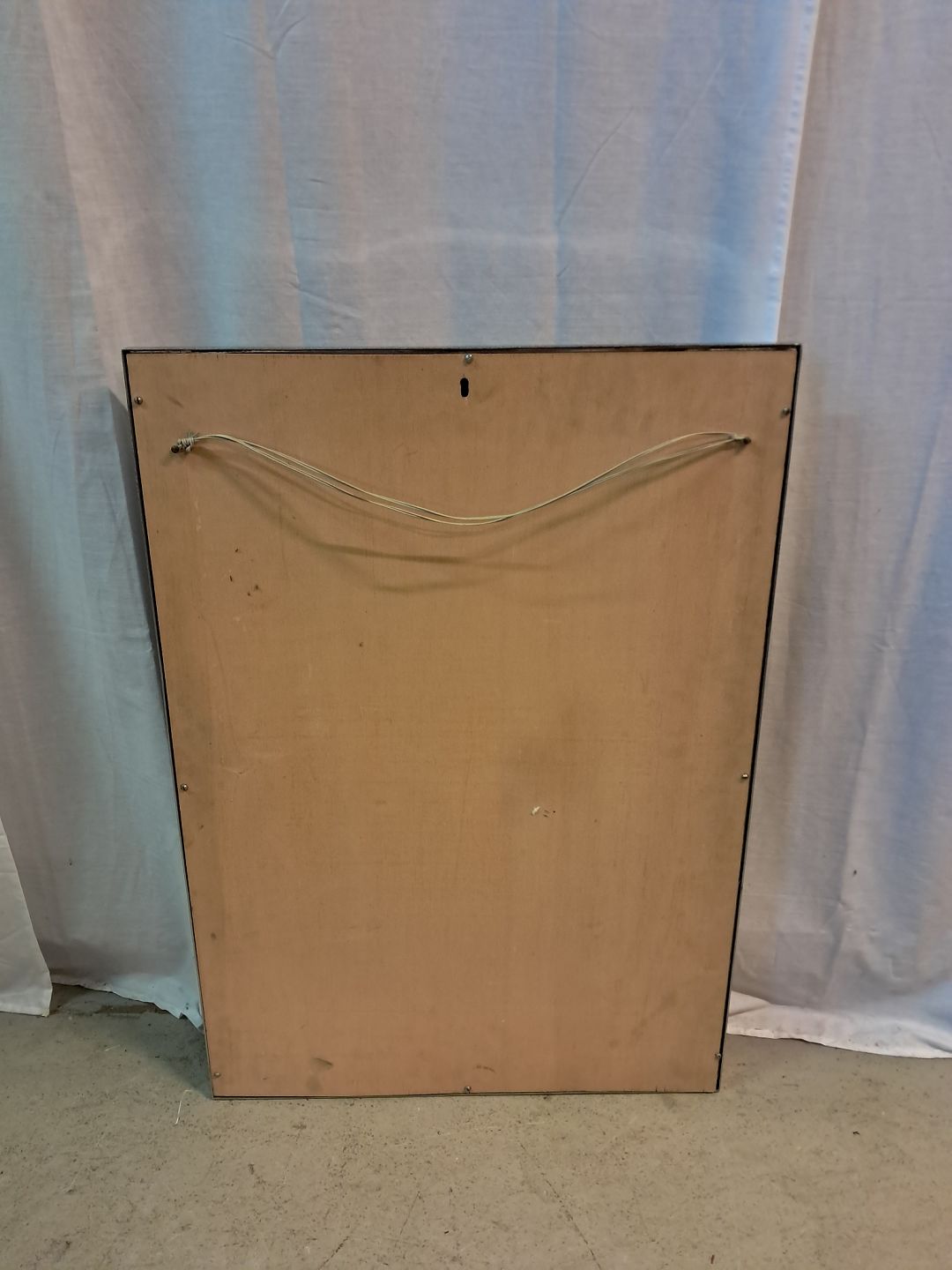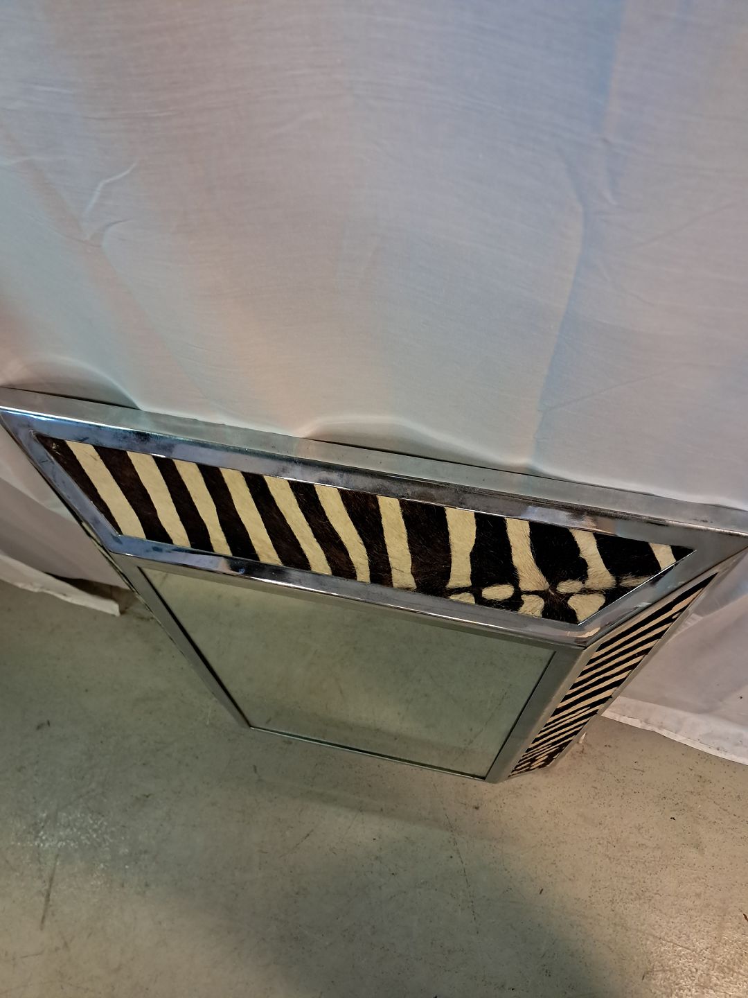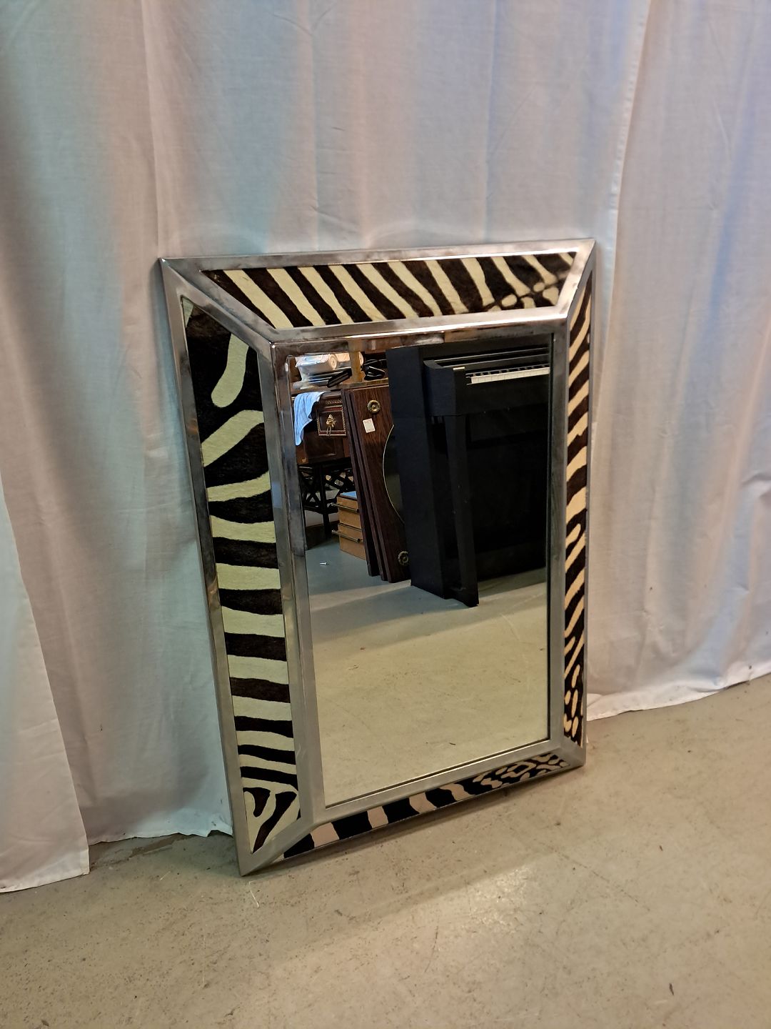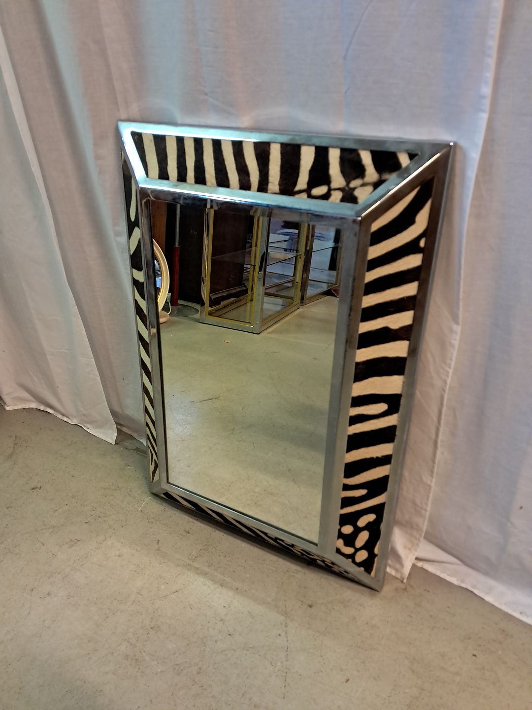 Spejl i metal og skind, fra 1990erne.Det har brugsspor.