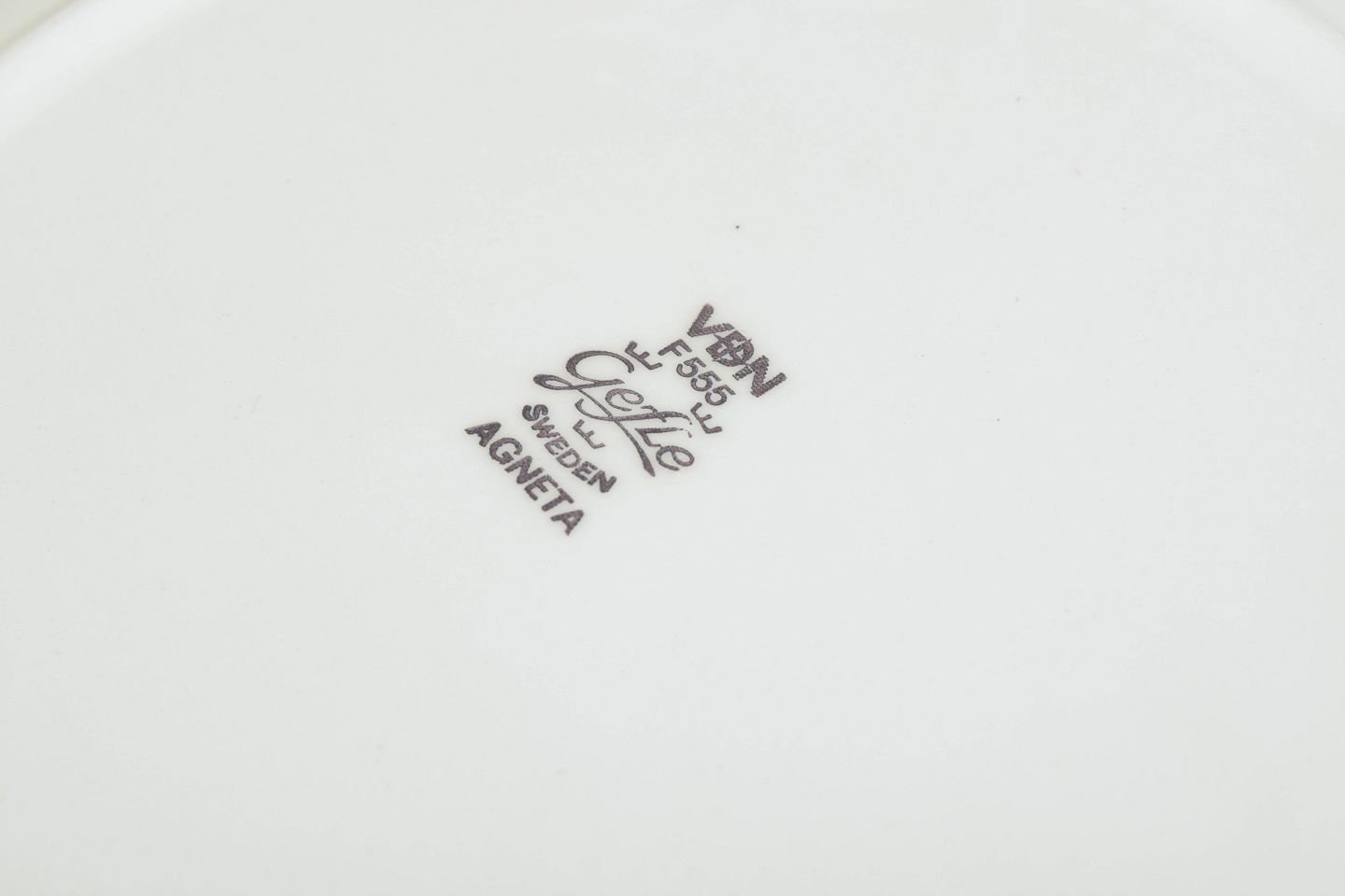 Gefle (Gefle Porslinsfabrik), founded in 1910 and later incorporated into the Upsala Ekeby group, produced a number of popular tableware series in the 1960s and 70s with bold graphic identities. The Agneta series is among the most recognisable, combining strong colour fields with botanical motifs—features that make it highly sought-after among collectors of Scandinavian retro stoneware today.