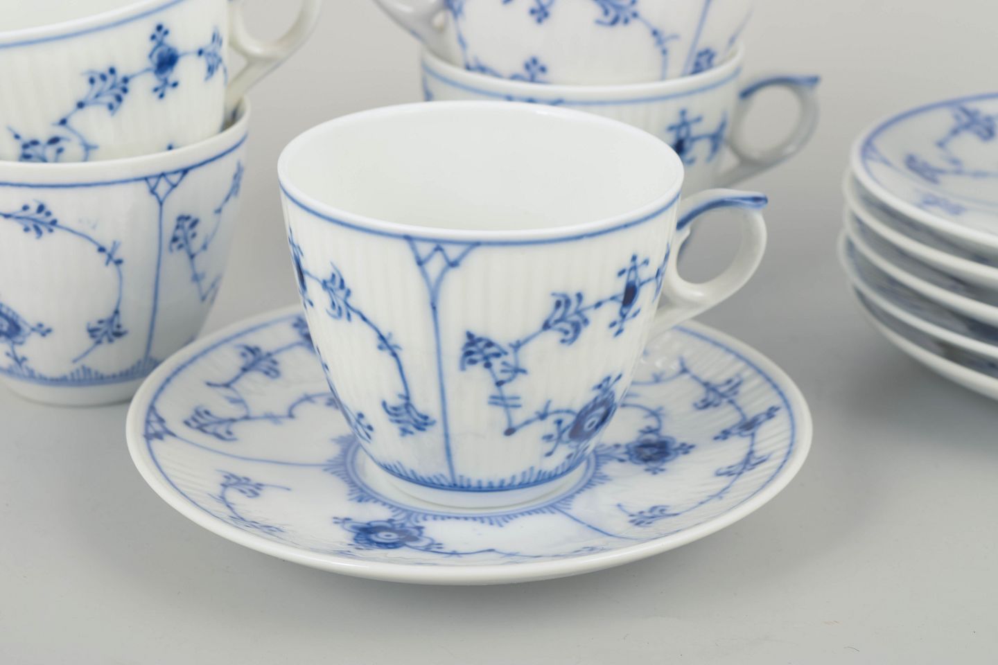 Blue Fluted Plain – Set of Six Coffee Cups with matching saucers, 1920s.