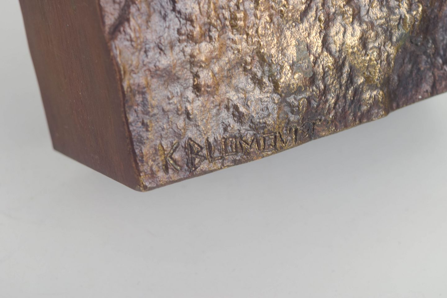 Kai Blomqvist worked from the 1960s onward as one of Finland’s notable metal artists, particularly recognised for his sculptural bronze pieces. His works combine raw, nature-inspired textures with a refined modernist formal language and are today sought after by collectors of Nordic studio craft.