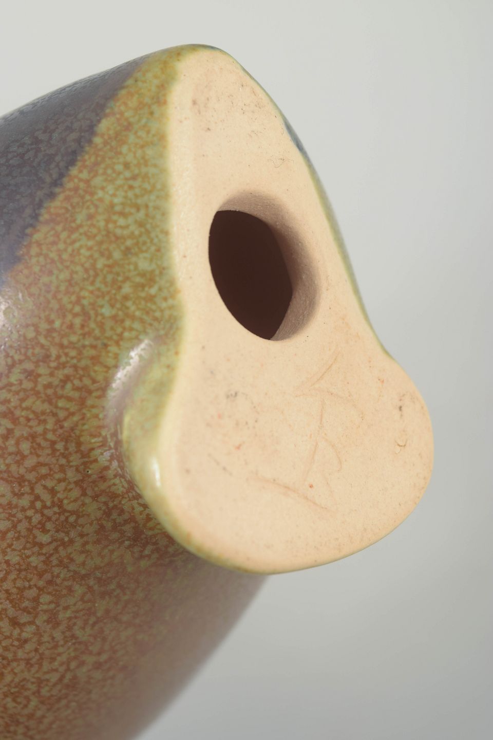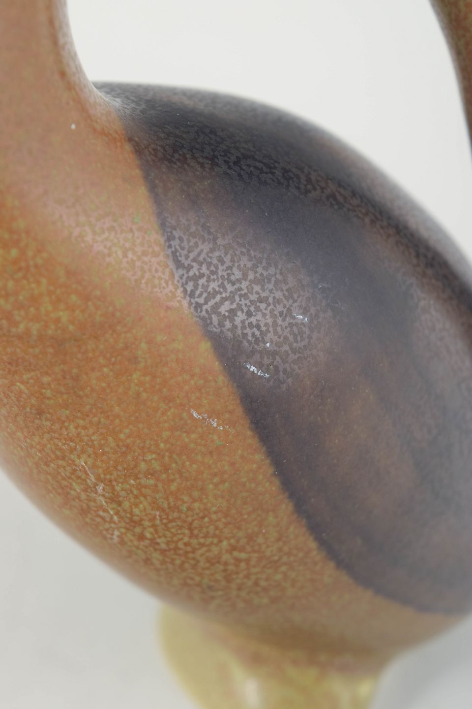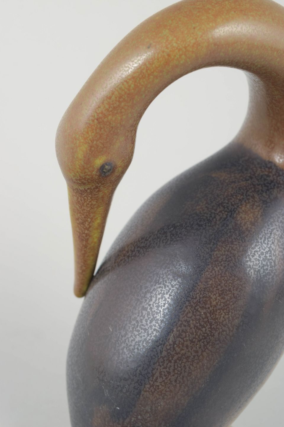 Rare stoneware bird figure with the characteristic organic form and deep, nuanced glaze typical of Basse’s work. The soft modelling and matte earth tones give the sculpture a calm and refined presence.