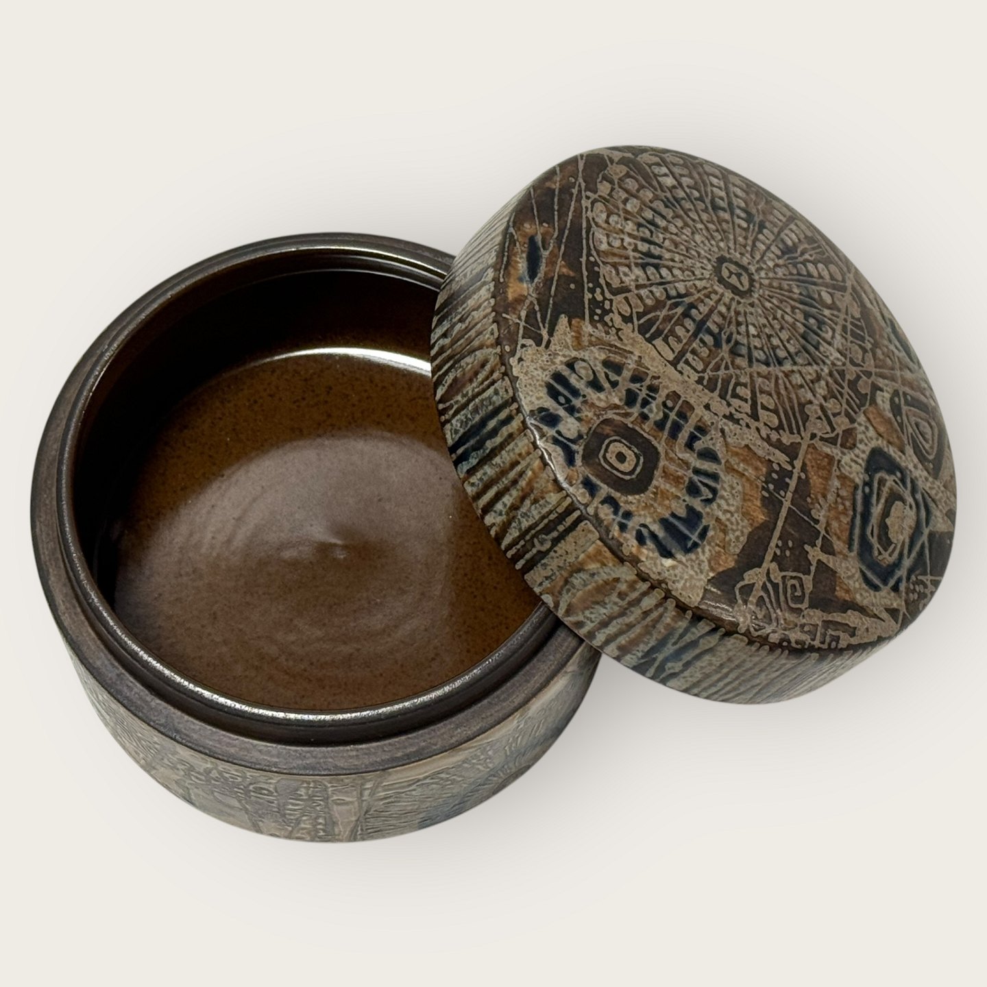 Royal Copenhagen, Lidded jar, # 87C / 3476, diameter 11cm, height 6.5, design Nils Thorsson *Excellent condition*Stock: 1