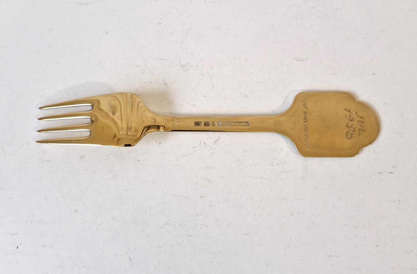 A.Michelsen Christmas fork in gold-plated sterling silver and enamel from 1986Stamp: A.Michelsen - Sterling - Denmark