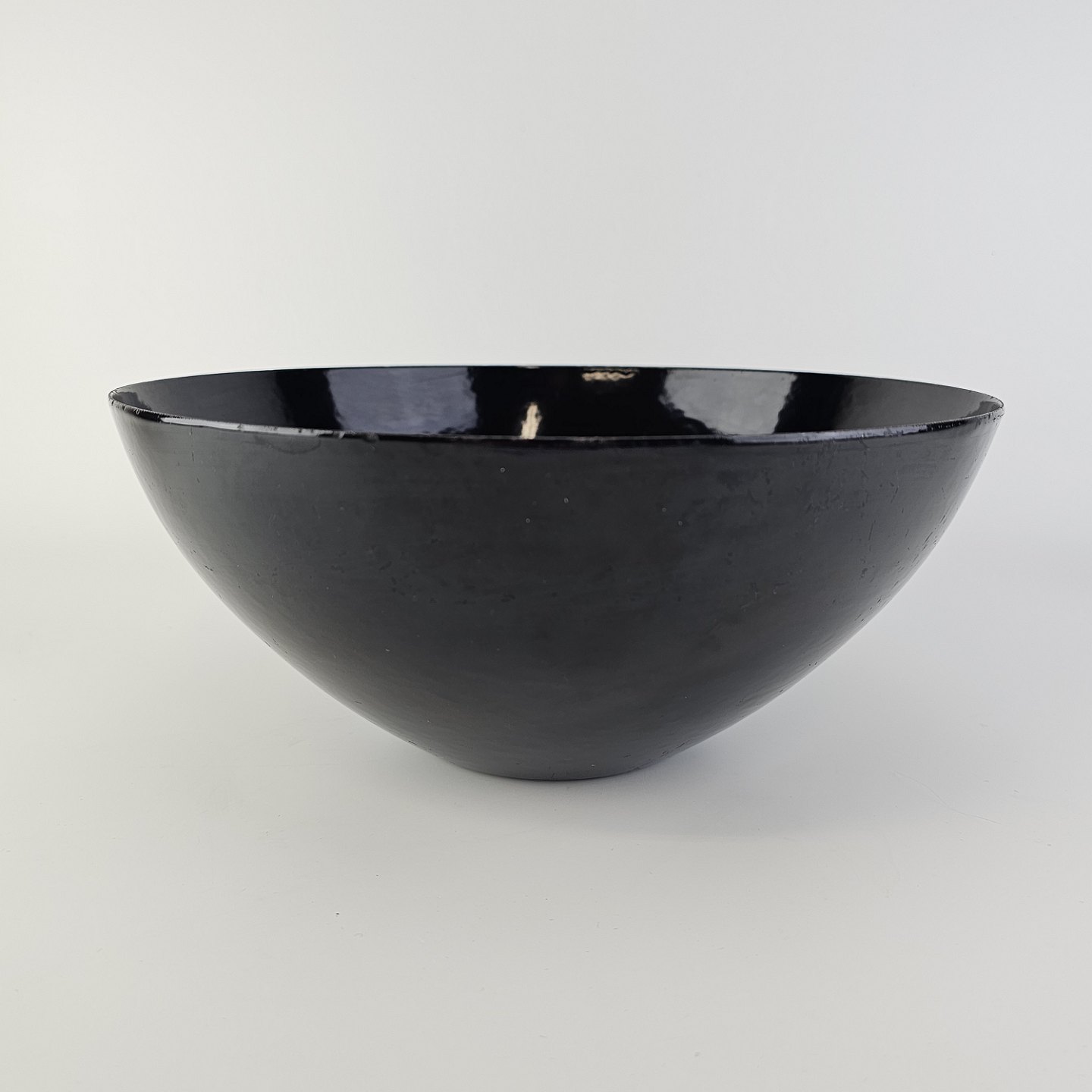 Krenit skål af sort metal med sort emalje indvendigt og udvendigtFormgiver Herbert Krenchel