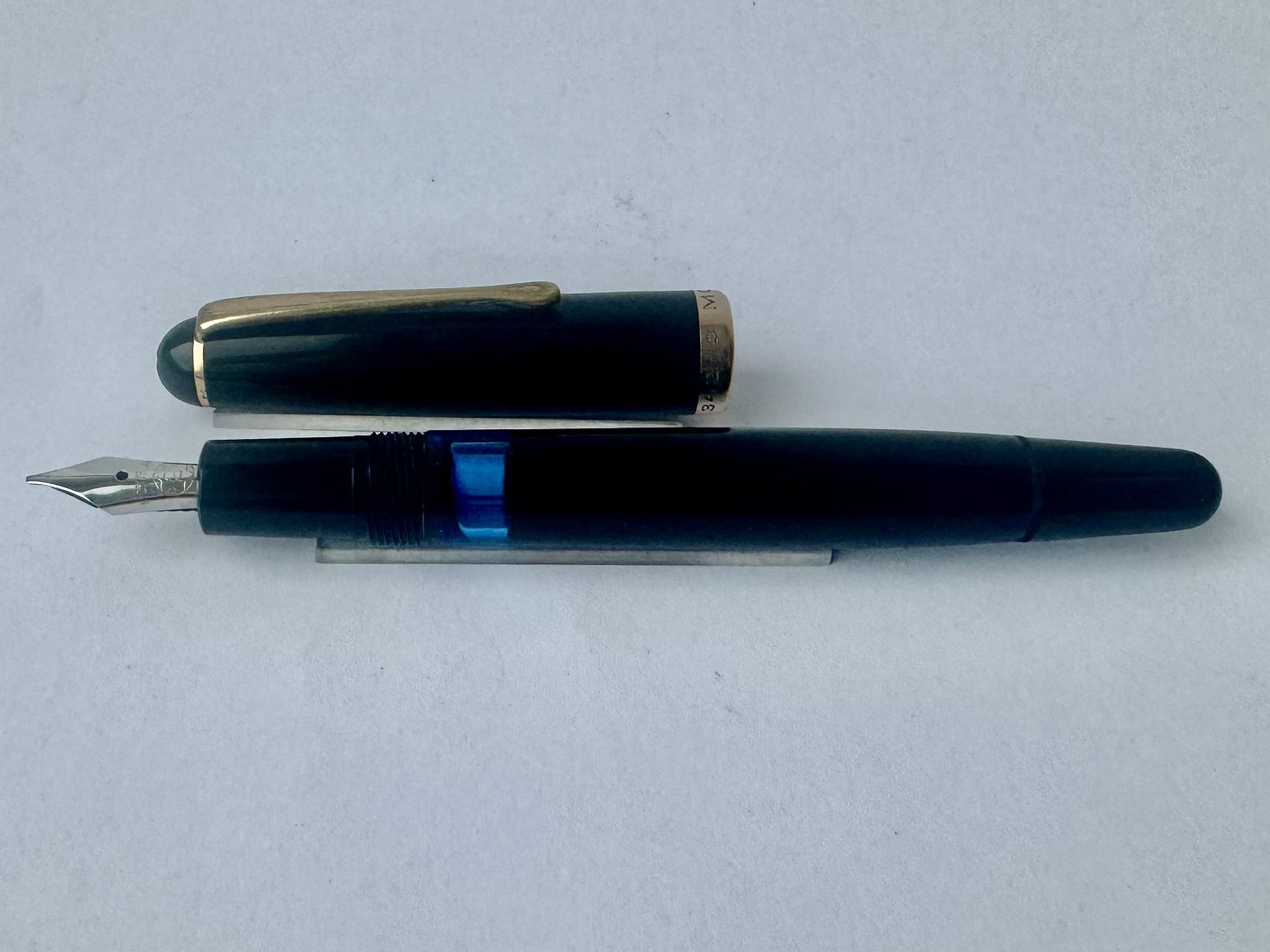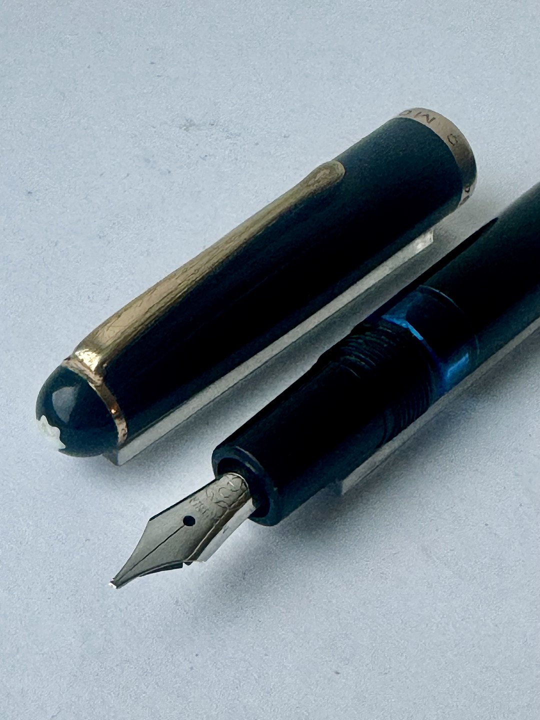 Black Montblanc no. 342 with piston filler. The pen has been tested and is ready to be used. Made in Germany in the 1950s. No damage or repairs. All parts on this fountain pen are original Montblanc parts belonging to this model. Length: 12.7 cm Dealer