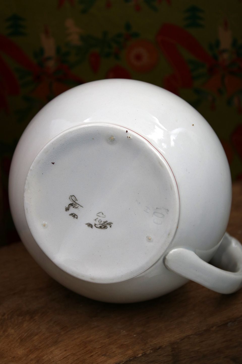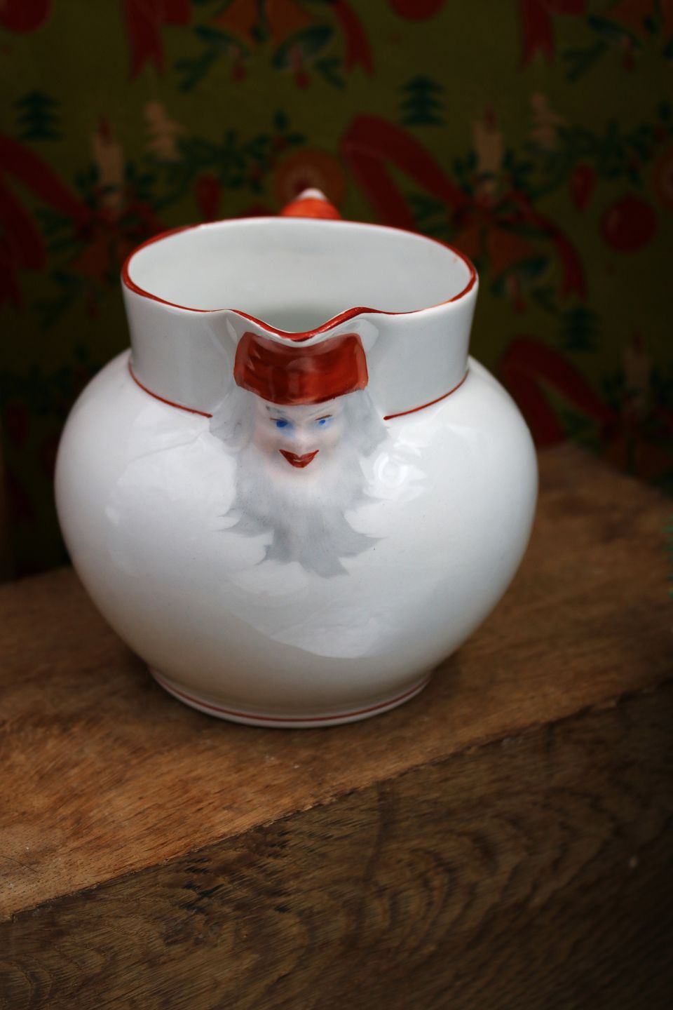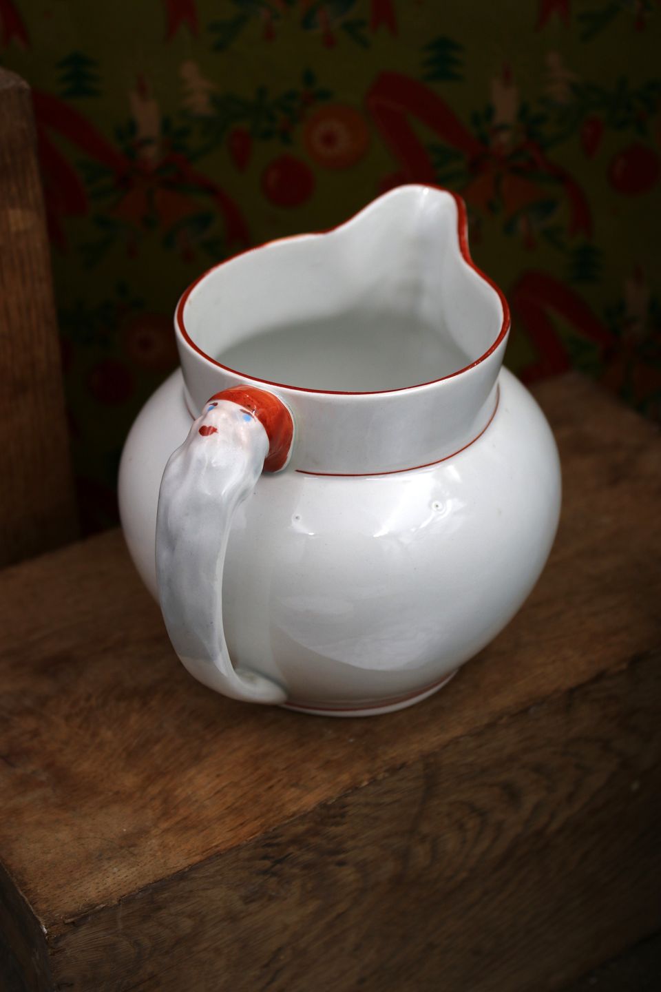 Old Swedish Christmas jug in faience with elves on the pouring spoutand on the handle. H: 12m. Dia.: 13.5cm.