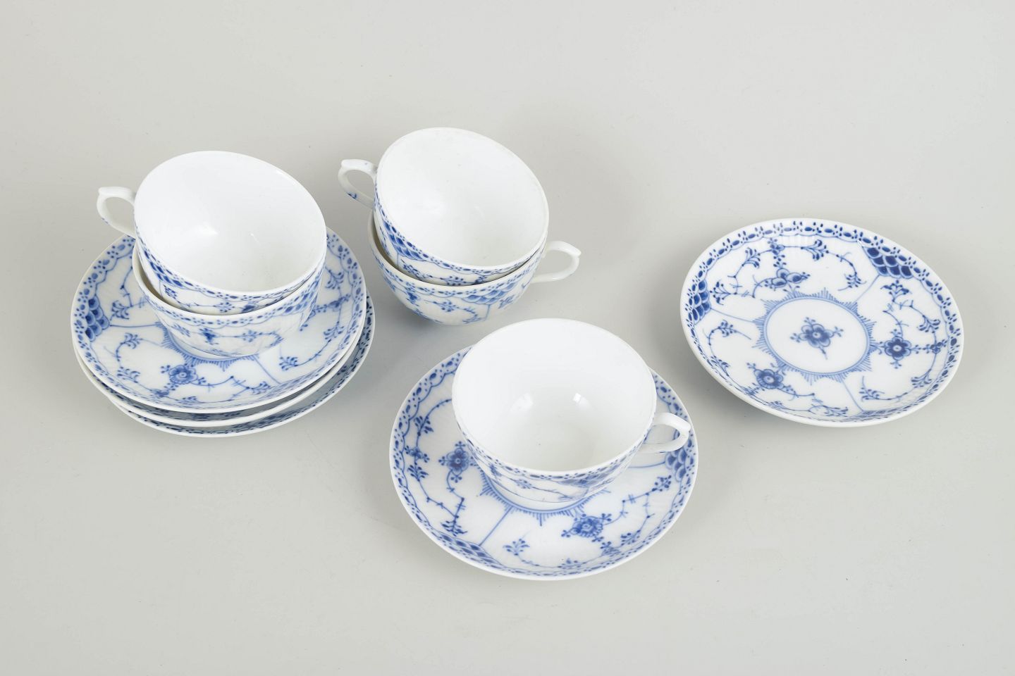 Royal CopenhagenSet of five cups and saucers, 1920s.