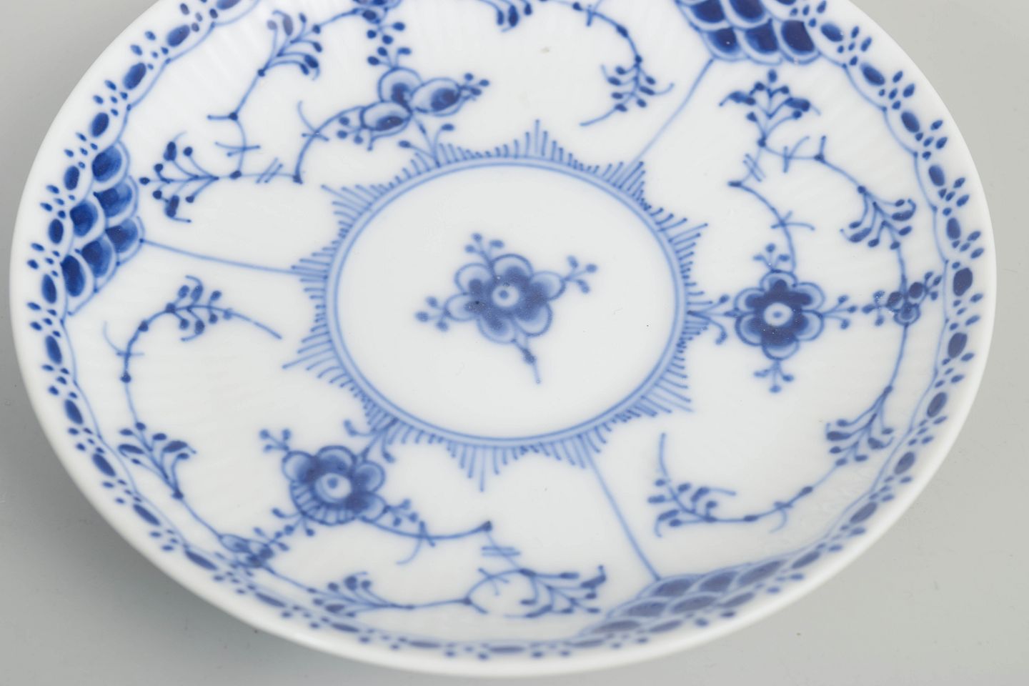 Blue Fluted Half Lace was created as a more ornate variant of the original Blue Fluted pattern from 1775. Each piece is hand-painted, resulting in subtle variations that give the design its characteristic vibrancy and strong appeal among collectors of Danish porcelain.