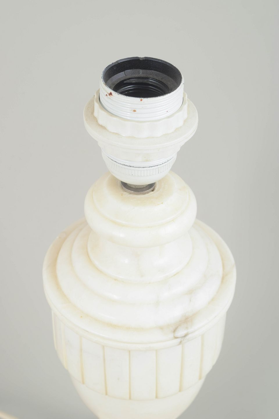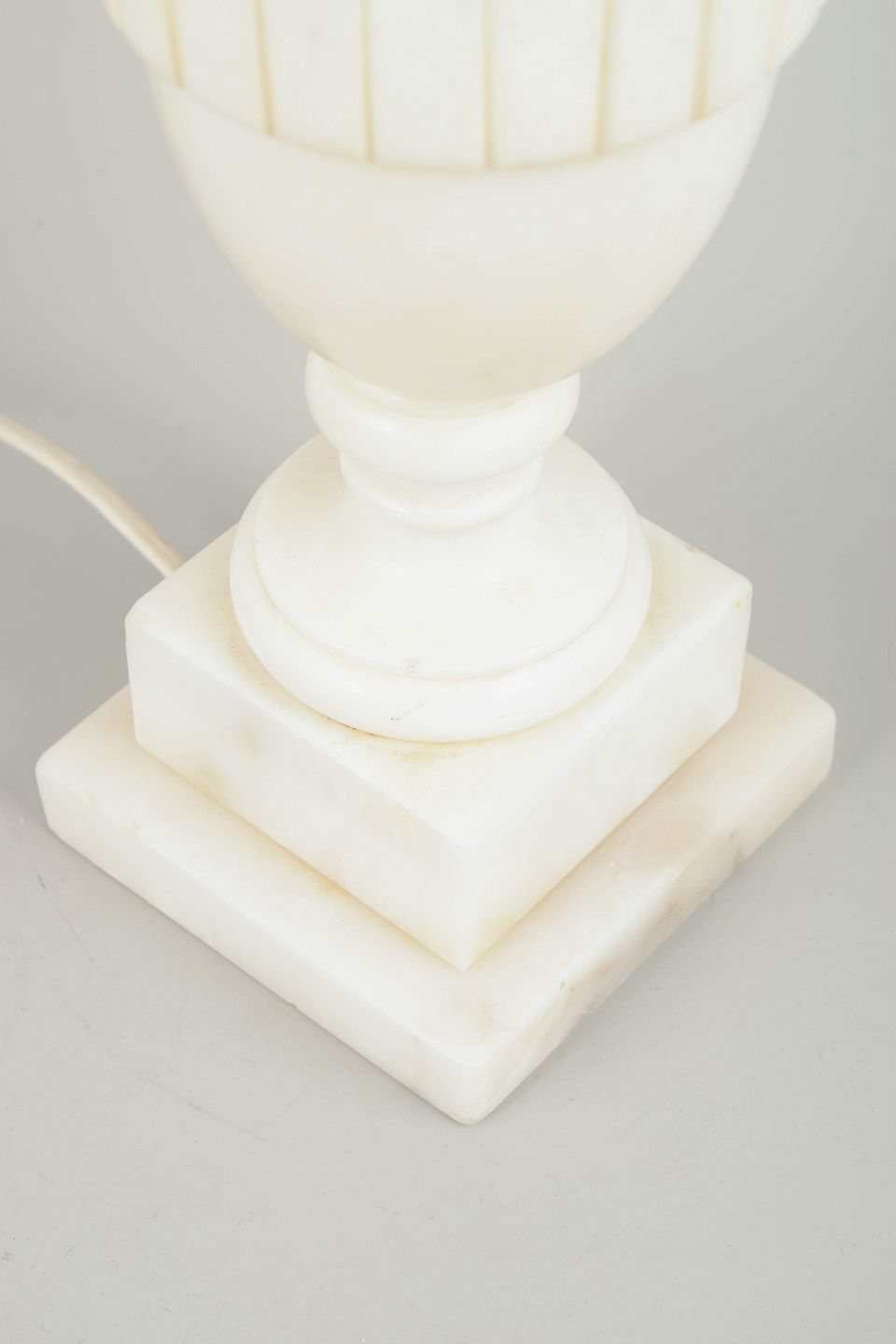 Italian Marble Table lamp, 1970s.Classically shaped table lamp in white marble, featuring a clearly profiled top section and vertical fluting around the mid-body. The simple baluster form and square base create a balanced and timeless appearance.