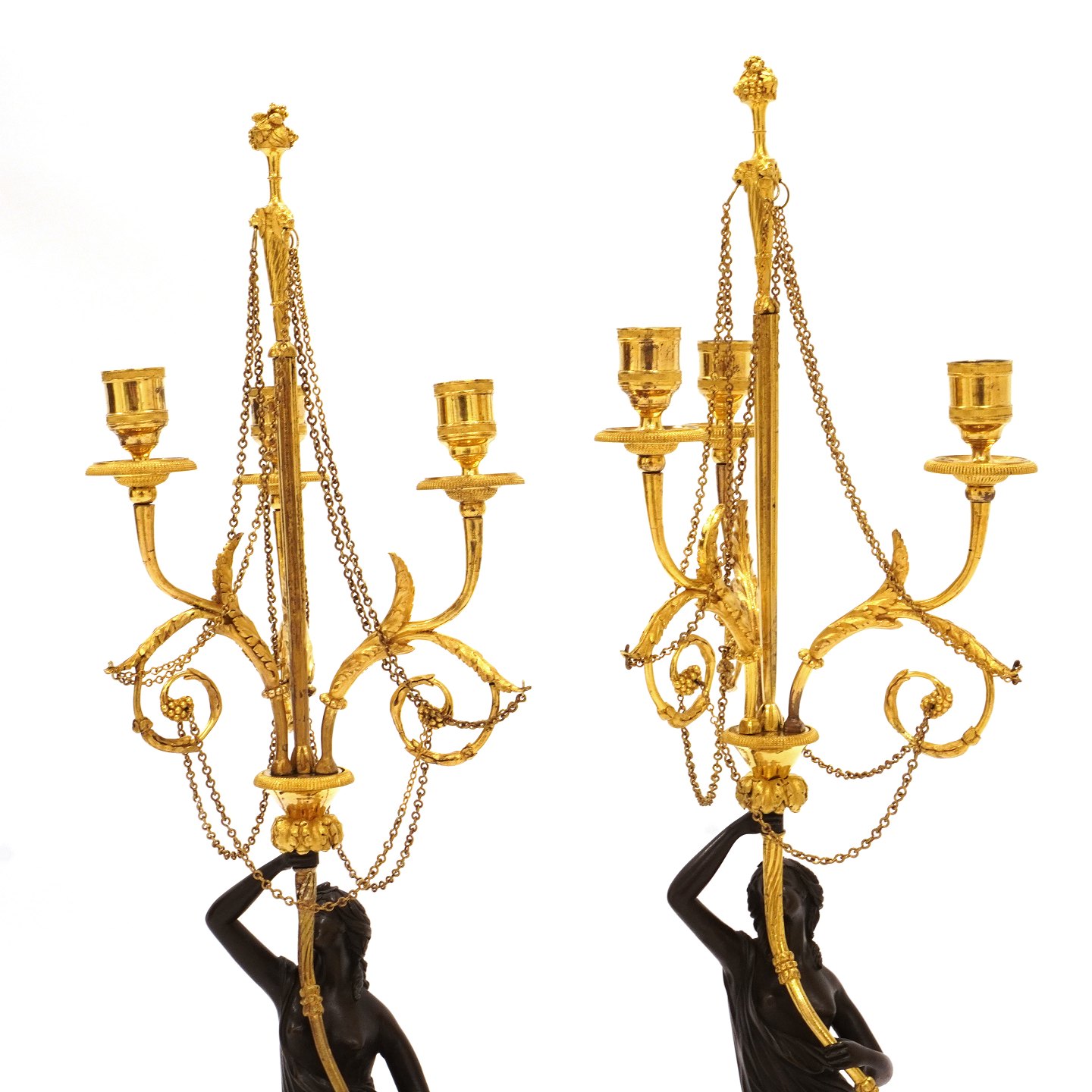 Pair of French firegilt bronze candelabra with marble base. France circa 1810. H: 73cm