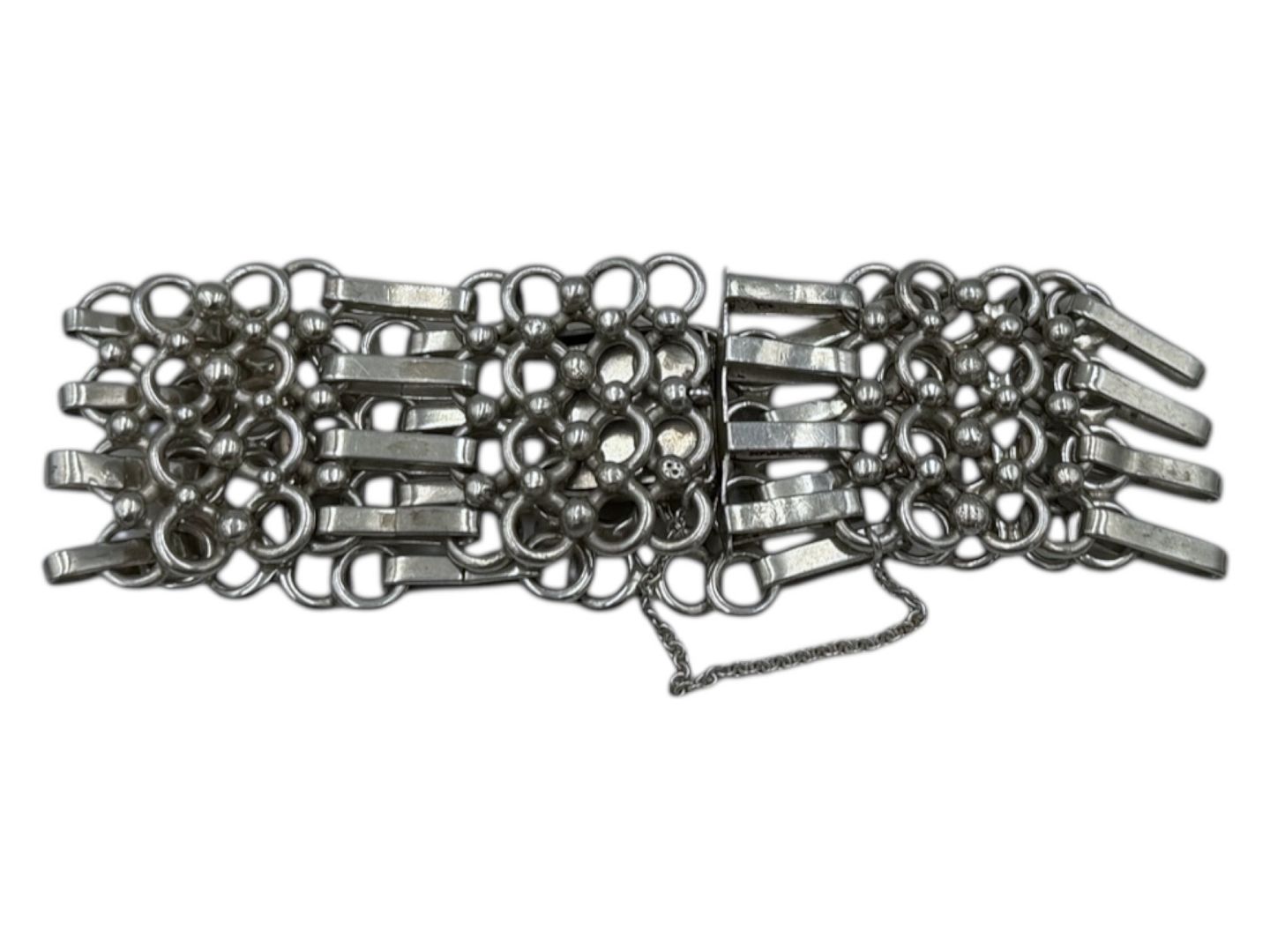 Wide and heavy silver bracelet from around 1970.Hallmarked "830S".