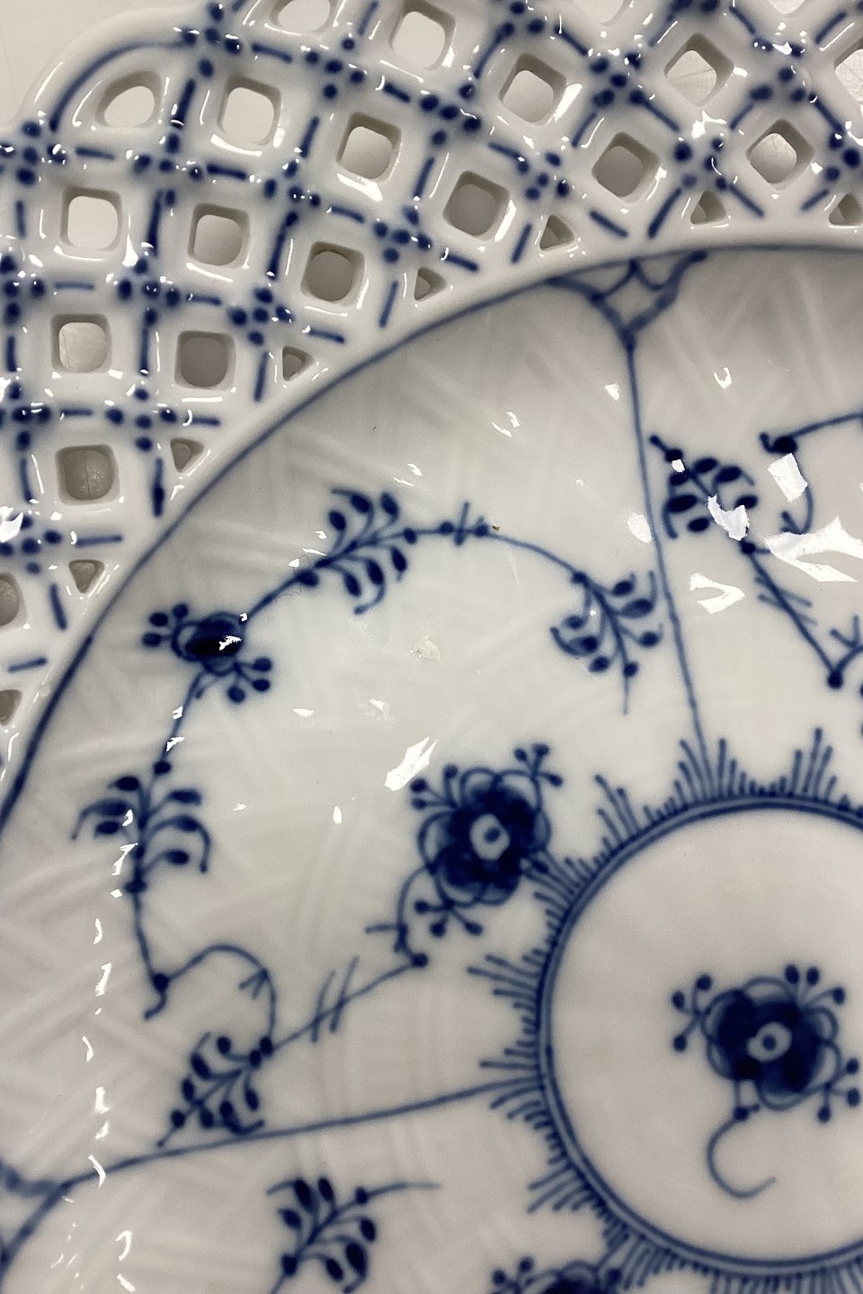Royal Copenhagen Blue Fluted Full Lace Flat Plate with open-work border No. 1/1098.Measures 25.5 cm / 10.04 in. 1st Quality with glaze defect, see photo.