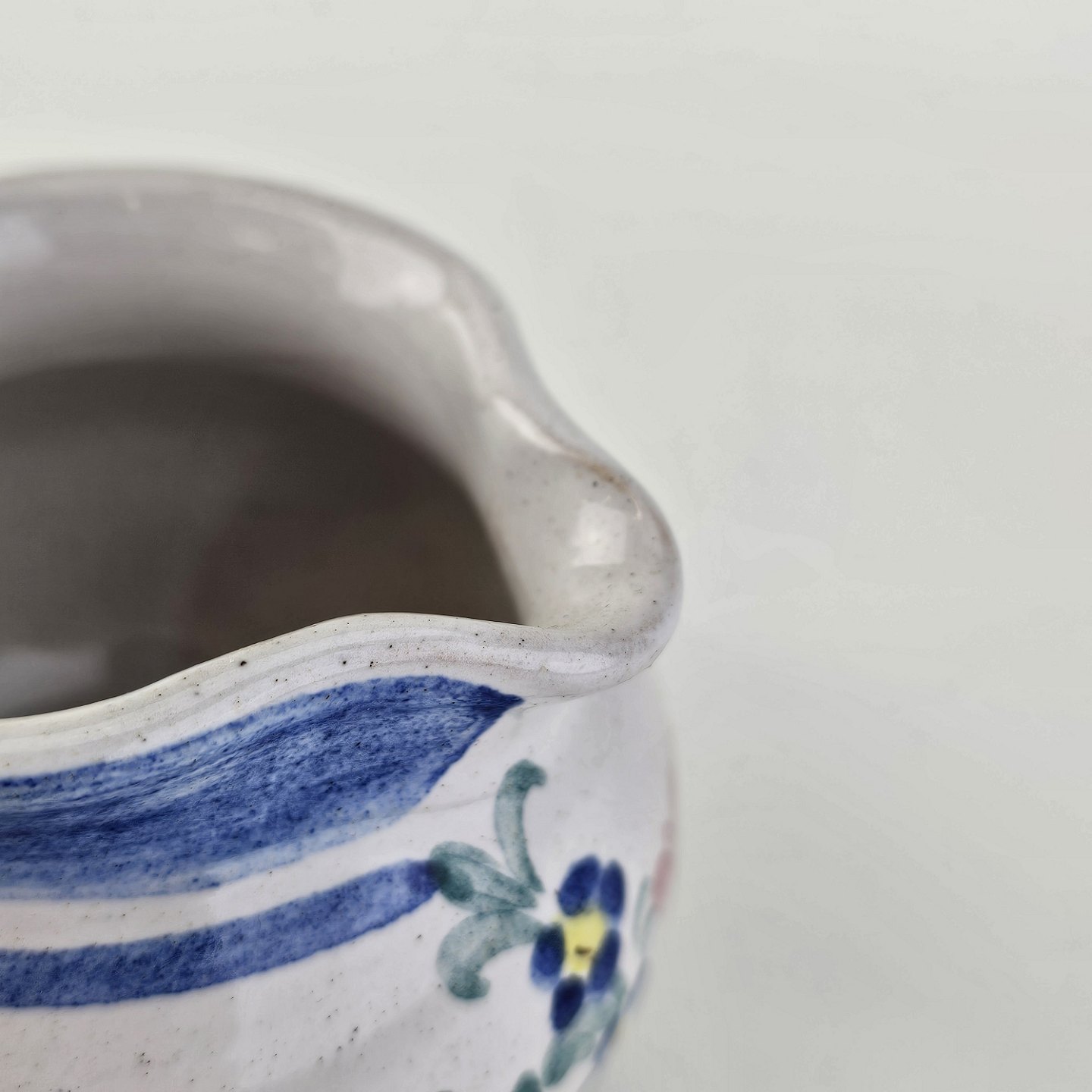 Flødekande i keramik med blå detaljer og blomsterdekorationProducent Lars Syberg keramik