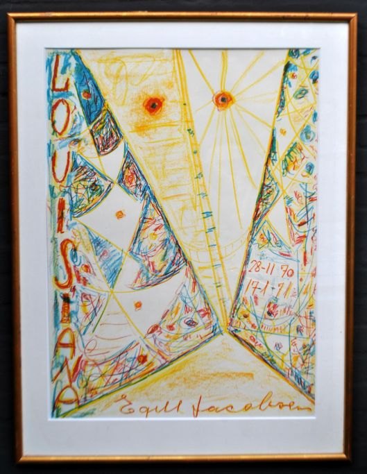 Jacobsen, Egill (1910 - 1998) Denmark: Louisiana exhibition poster, 1970-1971. Color lithograph. Unnumbered. Signed in the print. H: 85 cm. W: 61 cm.Framed: H: 102 cm. W: 78 cm.