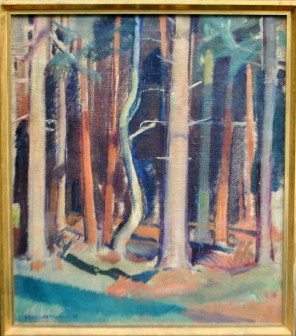 Hansen, Harald (1890 - 1967) Denmark: Forest picture. Oil on canvas. Signed. 83 x 73 cm.Framed: 90 x 80 cm.