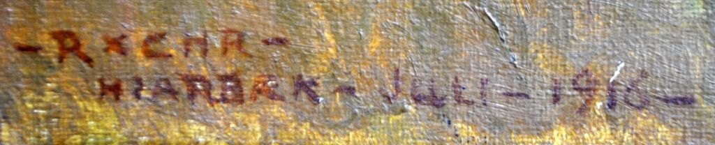Christiansen, Rasmus (1863 - 1940) Denmark: Landscape at Hjarbæk, 1916. Oil on canvas. Signed: RxCHR - Hjarbæk - July - 1916. H: 56 cm. W: 106 cm.Framed: H: 70 cm. W: 86 cm.