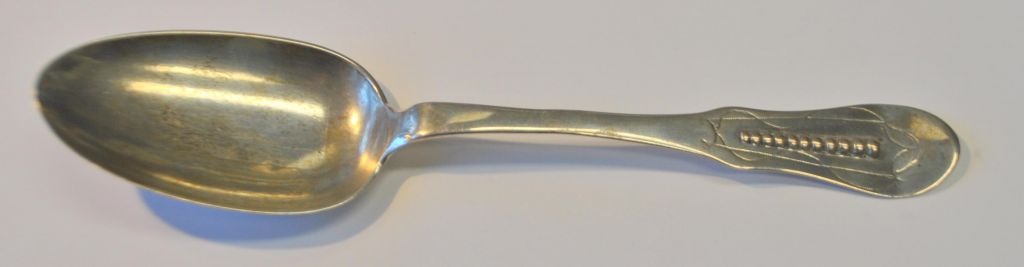 Andreas Christian Bödewatt (1736 - 1815) Tønder, Denmark: Silver dining spoon. With decoration on the handle. Stamped with master's mark and town mark. L: 20.5 cm. Without engravings.Item number: 28761
