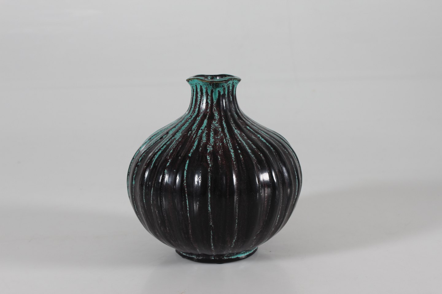 Herman A. KählerRund Svend Hammershøi vase i rillet stil dekoreret med