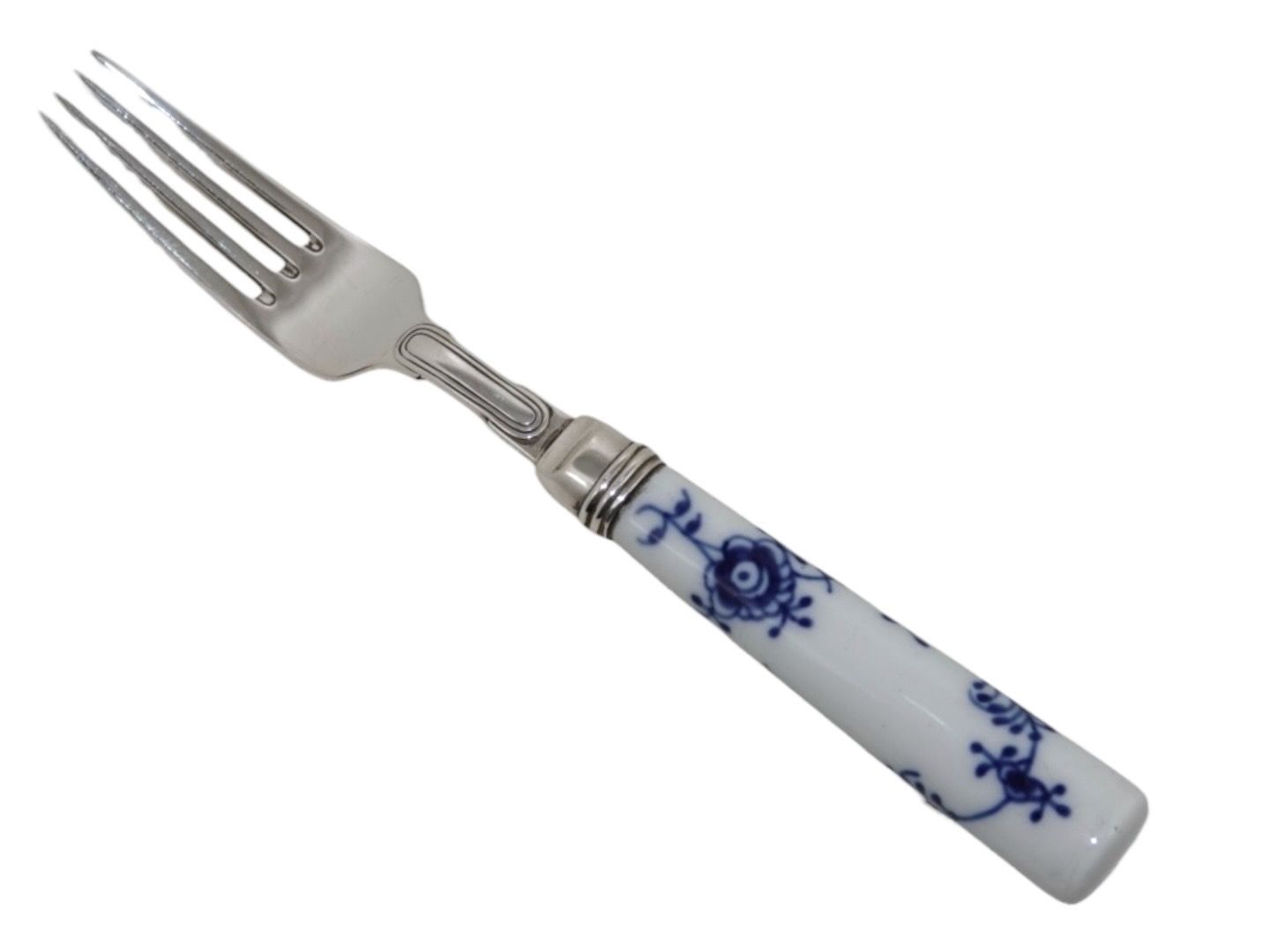 Royal Copenhagen Blue Fluted Plain, rare fork with Anton Michelsen sterling silver.