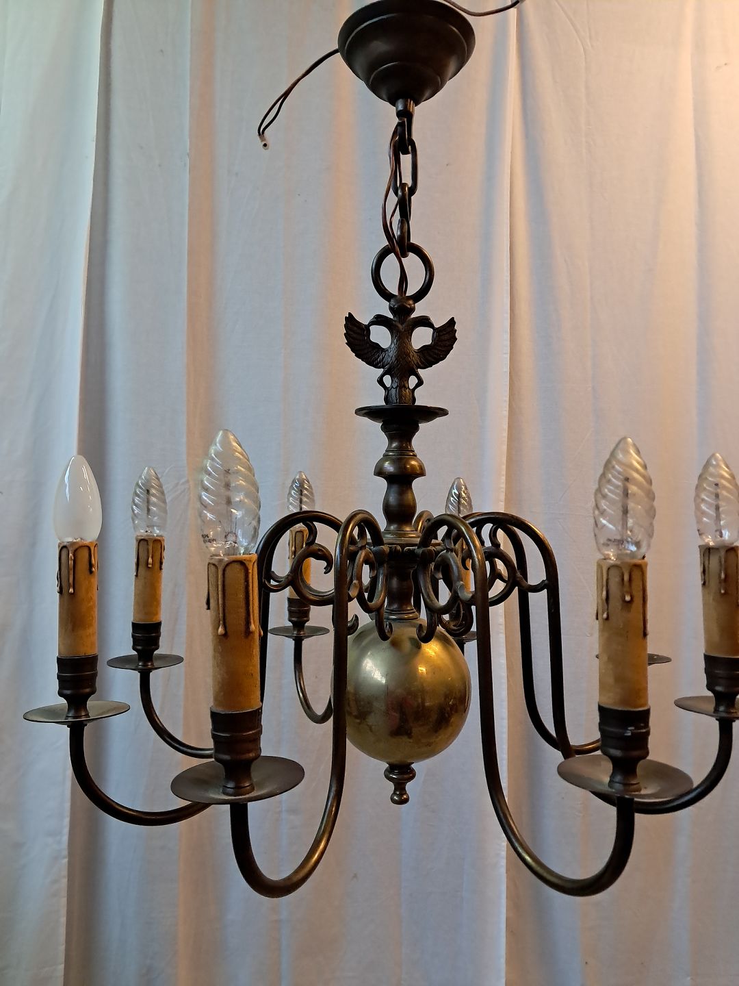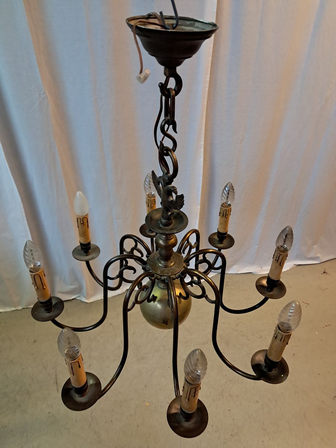8-armet kirkekrone i bruneret messing, fra 1930erne.