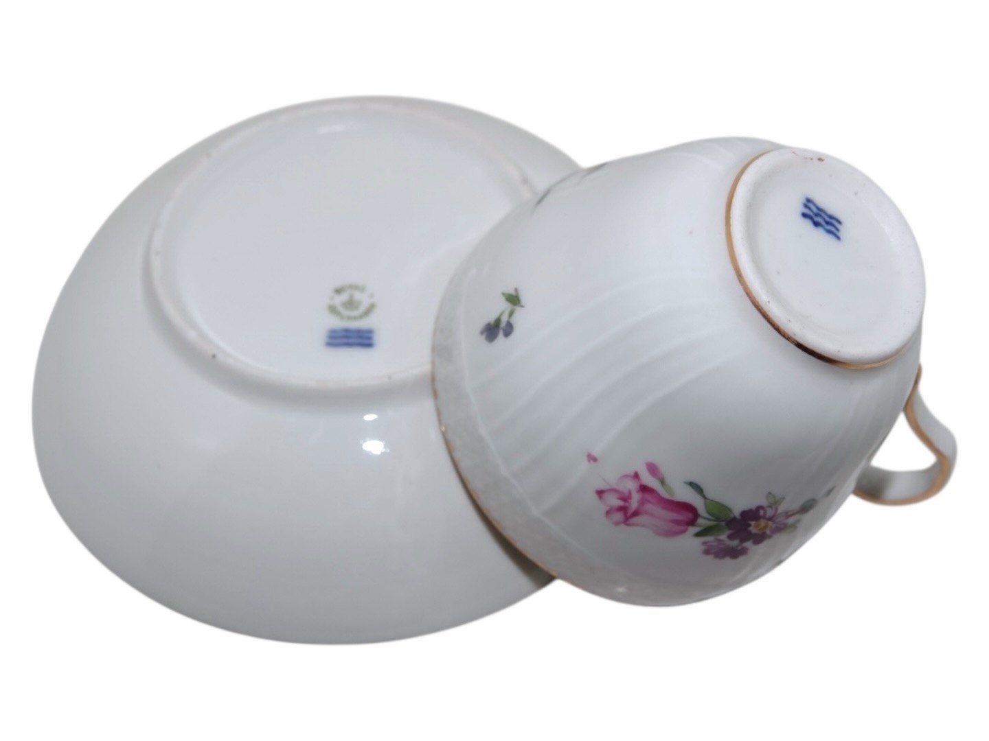 Royal Copenhagen Full Saxon Flower, large coffeecup with matching saucer.Factory first.