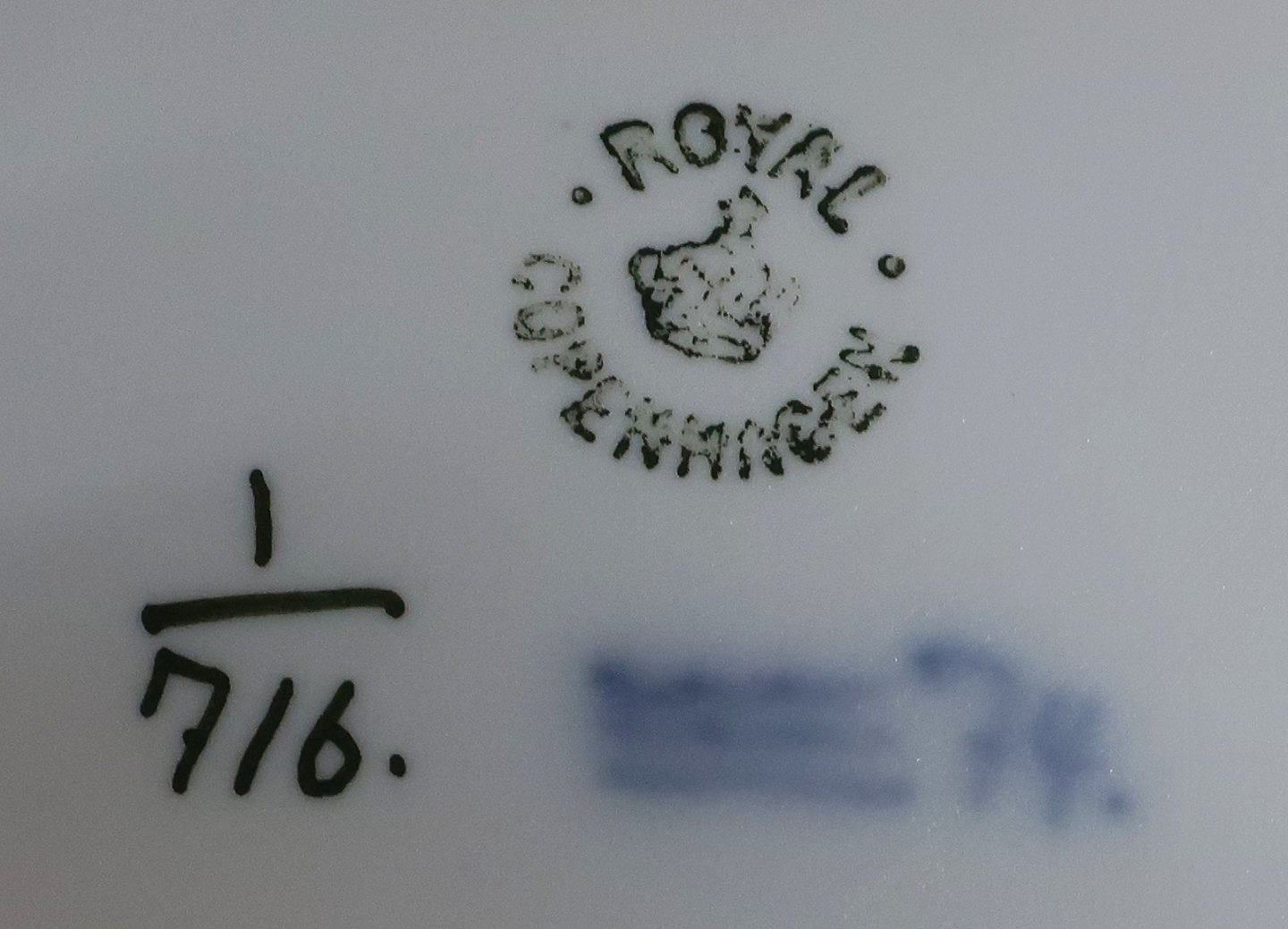 Royal Copenhagen. Musselmalet Halvblonde. Firkantet bakke. Model 716. Længde 23,5 cm. Bredde 15,5 cm. (1 sortering). Produceret før 1923 Udstiller