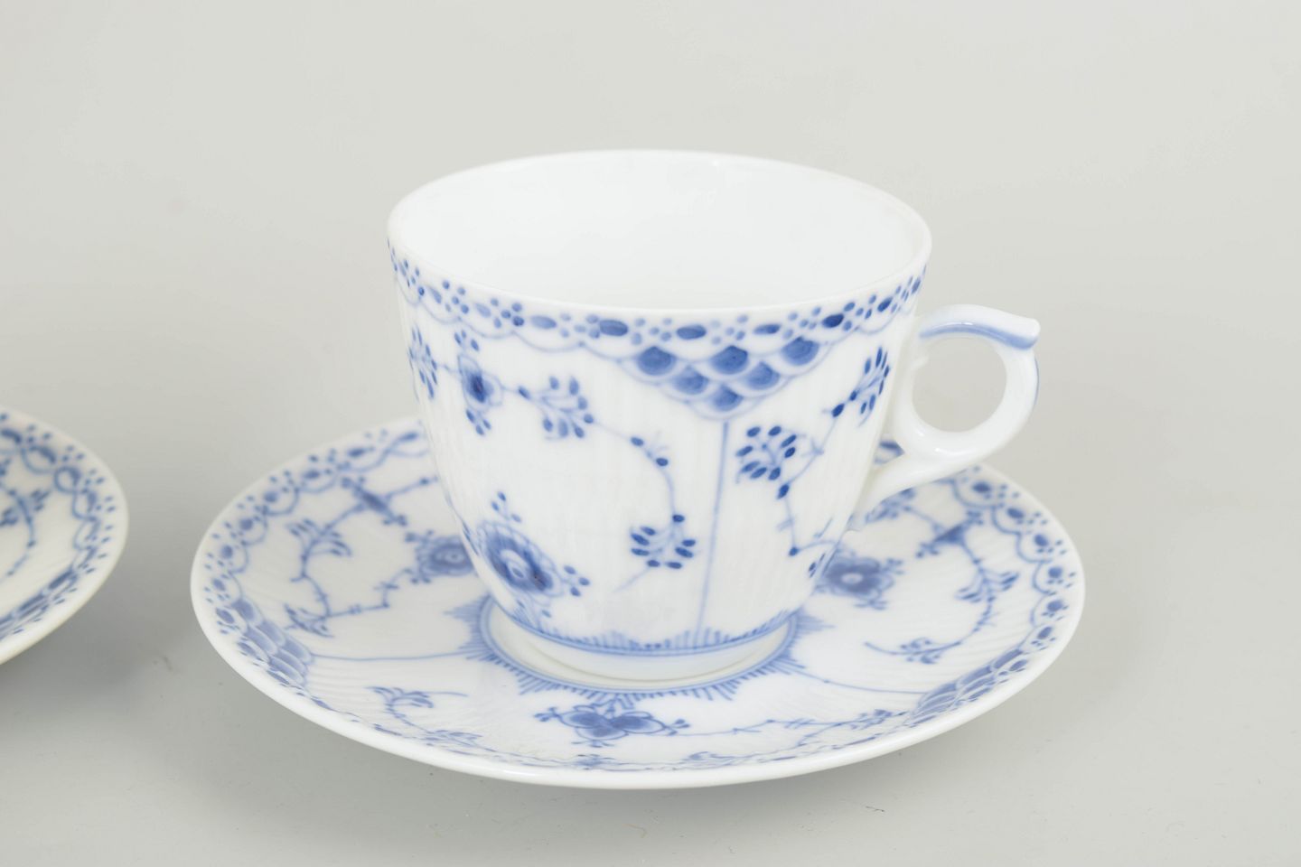 Introduced in 1885, Blue Fluted Half Lace represents a more decorative evolution of the original Blue Fluted Plain service. Coffee cups and saucers were central to coffee culture during the early 20th century. Cancelled pieces were sold with minor imperfections that do not affect usability and today allow collectors and users to assemble authentic sets across different quality grades.