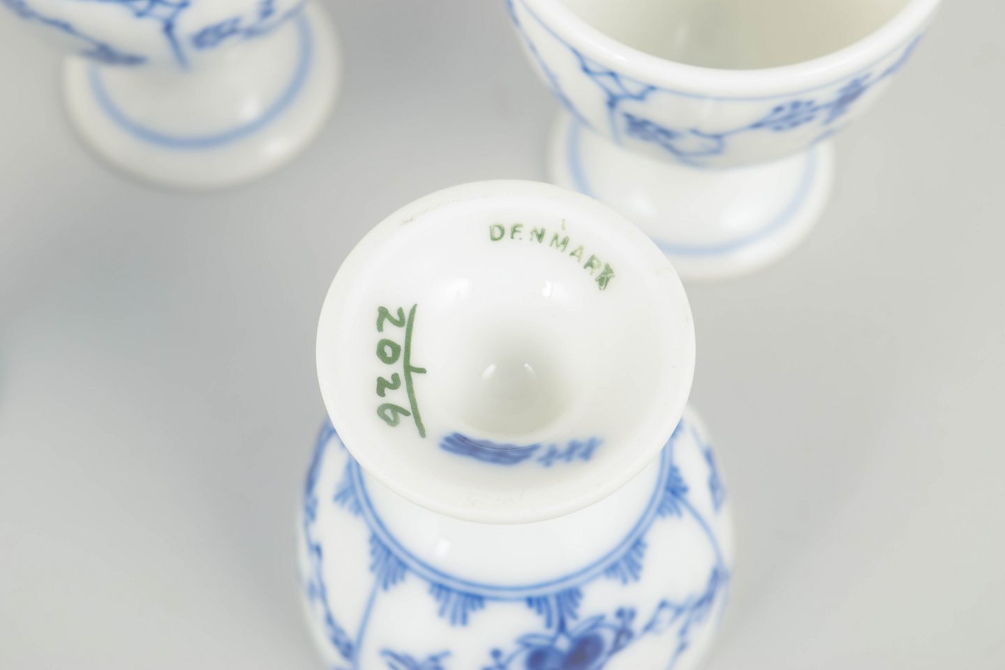 Blue Fluted Plain was introduced in 1775 and is Royal Copenhagen’s oldest and most traditional pattern. Smaller table accessories such as egg cups were an integral part of the breakfast table and demonstrate the functional range of the service. Examples from the 1920s are particularly valued for their craftsmanship and refined hand-painted decoration.