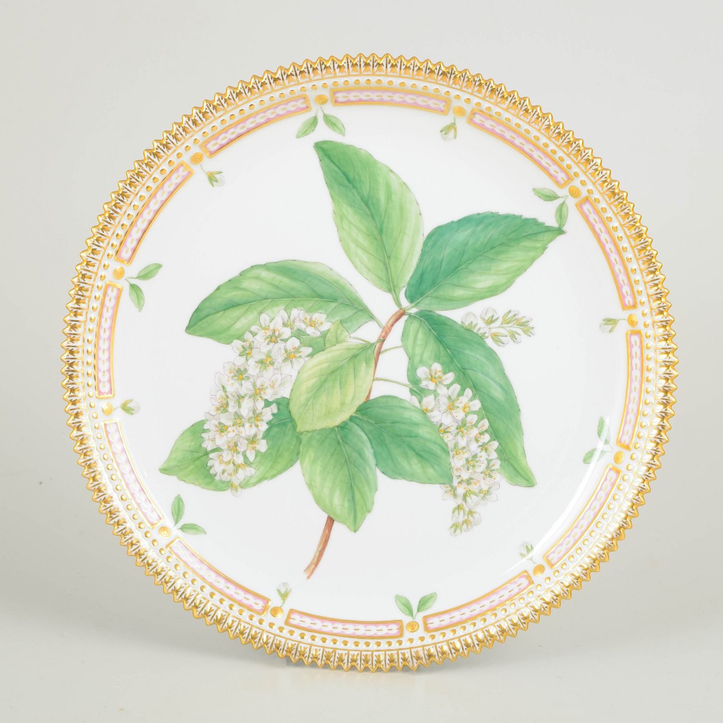 Bio: The Flora Danica service was introduced in 1790 and is regarded as one of Royal Copenhagen’s most prestigious productions. The decoration is based on the monumental botanical work Flora Danica and is renowned for its high level of detail and exceptional craftsmanship. Trays and platters were used both practically and decoratively at the refined table and are today highly sought after by collectors.
