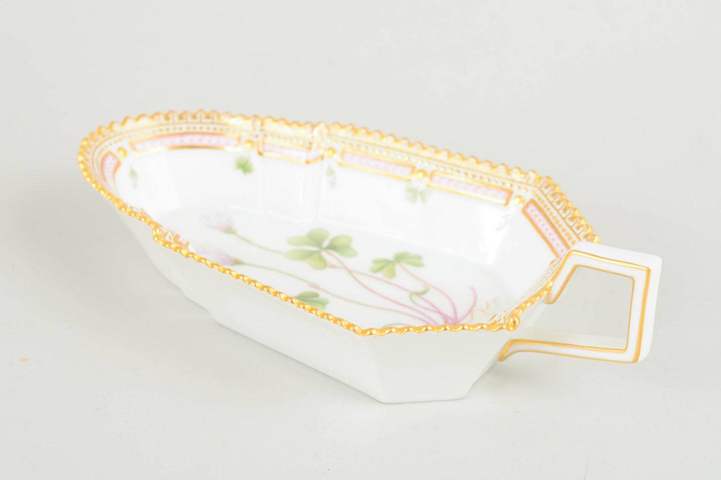 Royal Copenhagen Flora Danica Serving Dish with Handle, 1961Elegant serving dish with handle from the iconic Flora Danica service. The dish is hand-painted with a botanical motif derived from the Flora Danica publication and executed in the service’s characteristic refined form with a decorative rim and pronounced handle. A decorative and functional serving piece, suitable for smaller servings.