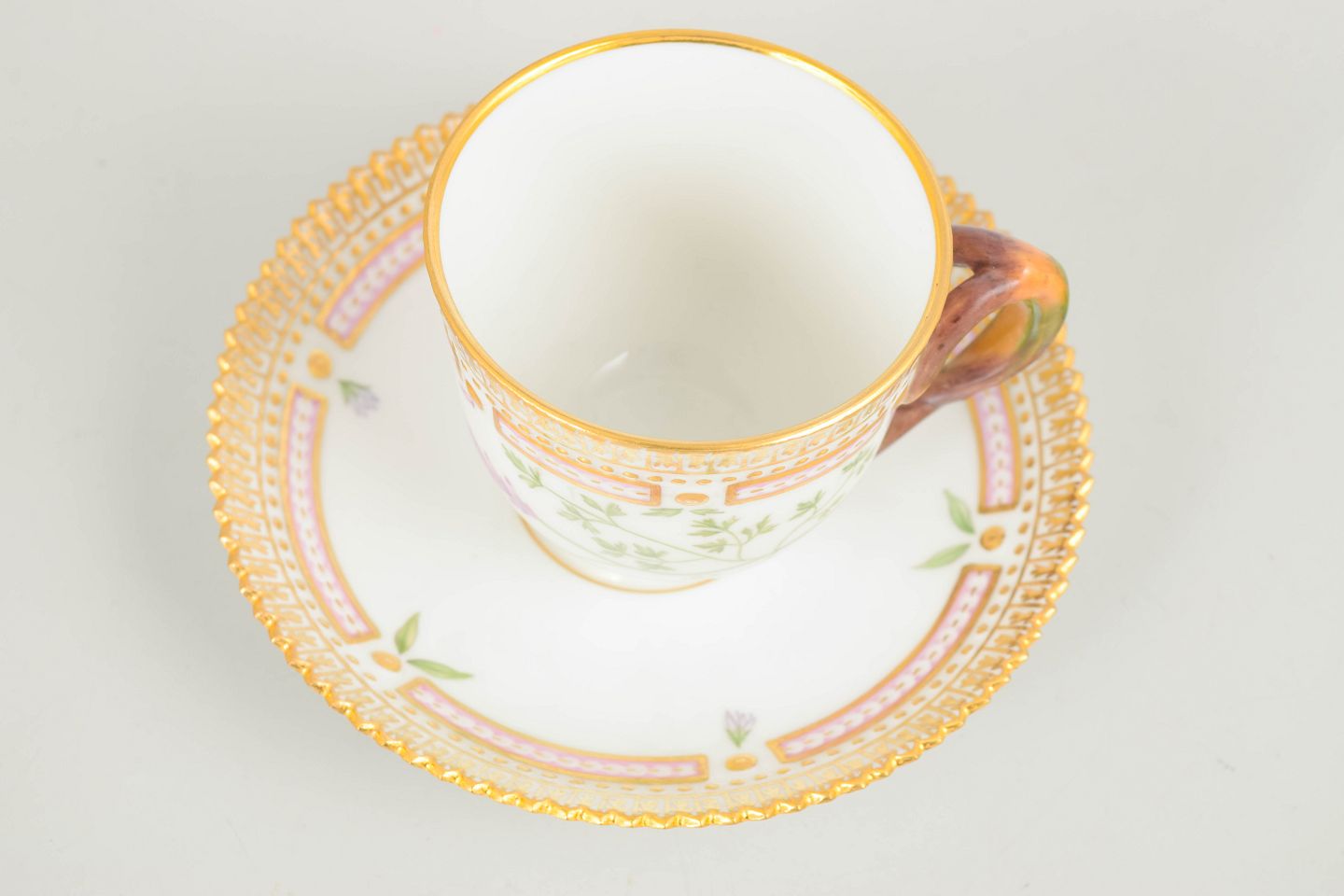 Royal Copenhagen Flora Danica Demitasse Cup with Saucer, 1960sElegant demitasse cup with matching saucer from the iconic Flora Danica service. The cup is hand-painted with a botanical motif derived from the Flora Danica publication and executed in the service’s characteristic refined form with a decorative rim. A classic and exclusive cup.