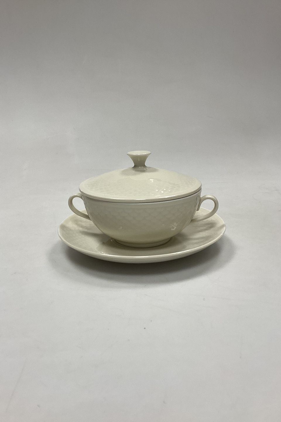 Bing and Grøndahl Elegance Cream Bouillon Cup with Lid and Saucer No. 247Measures 8 cm x 13 cm / 3.15 inch x 5.12 inch