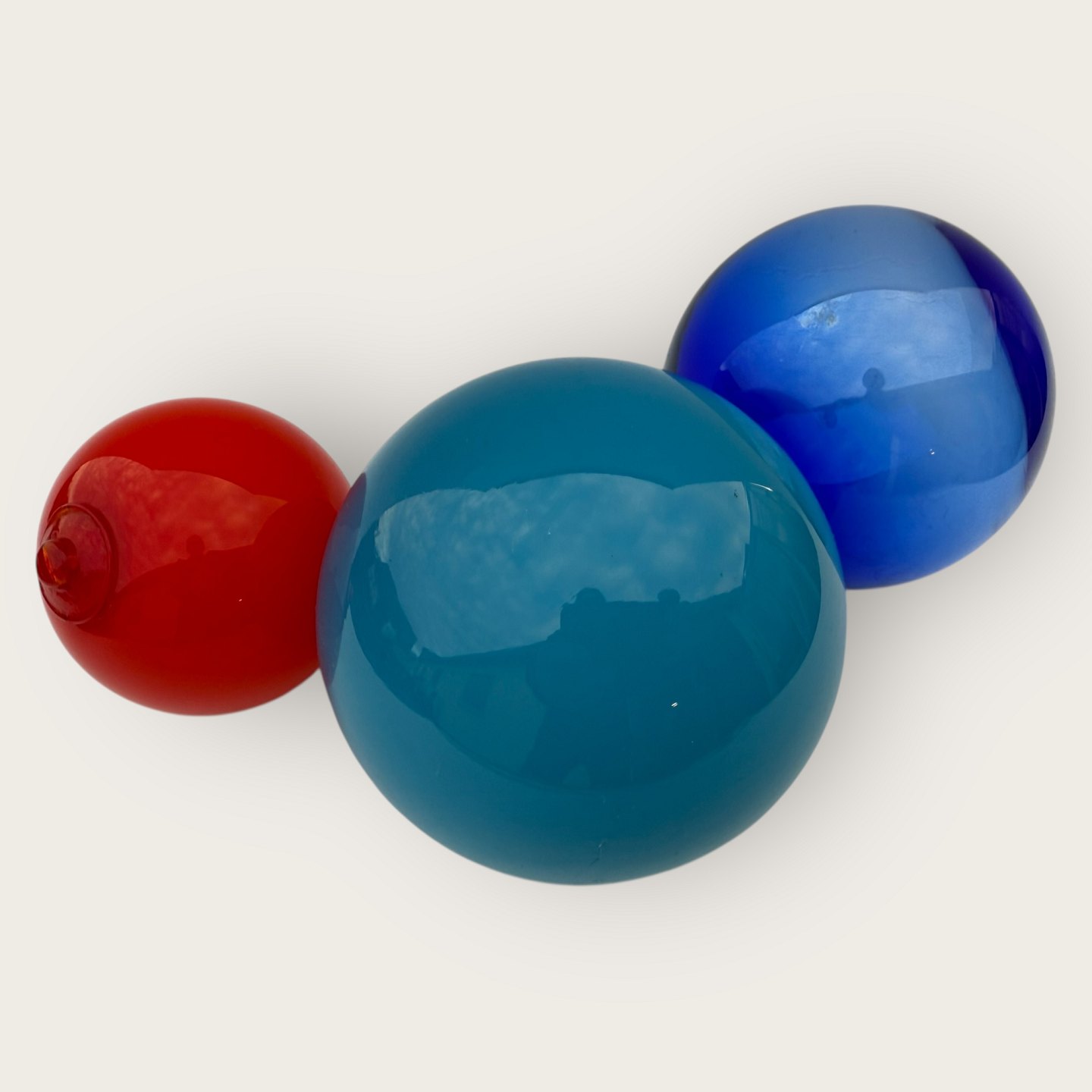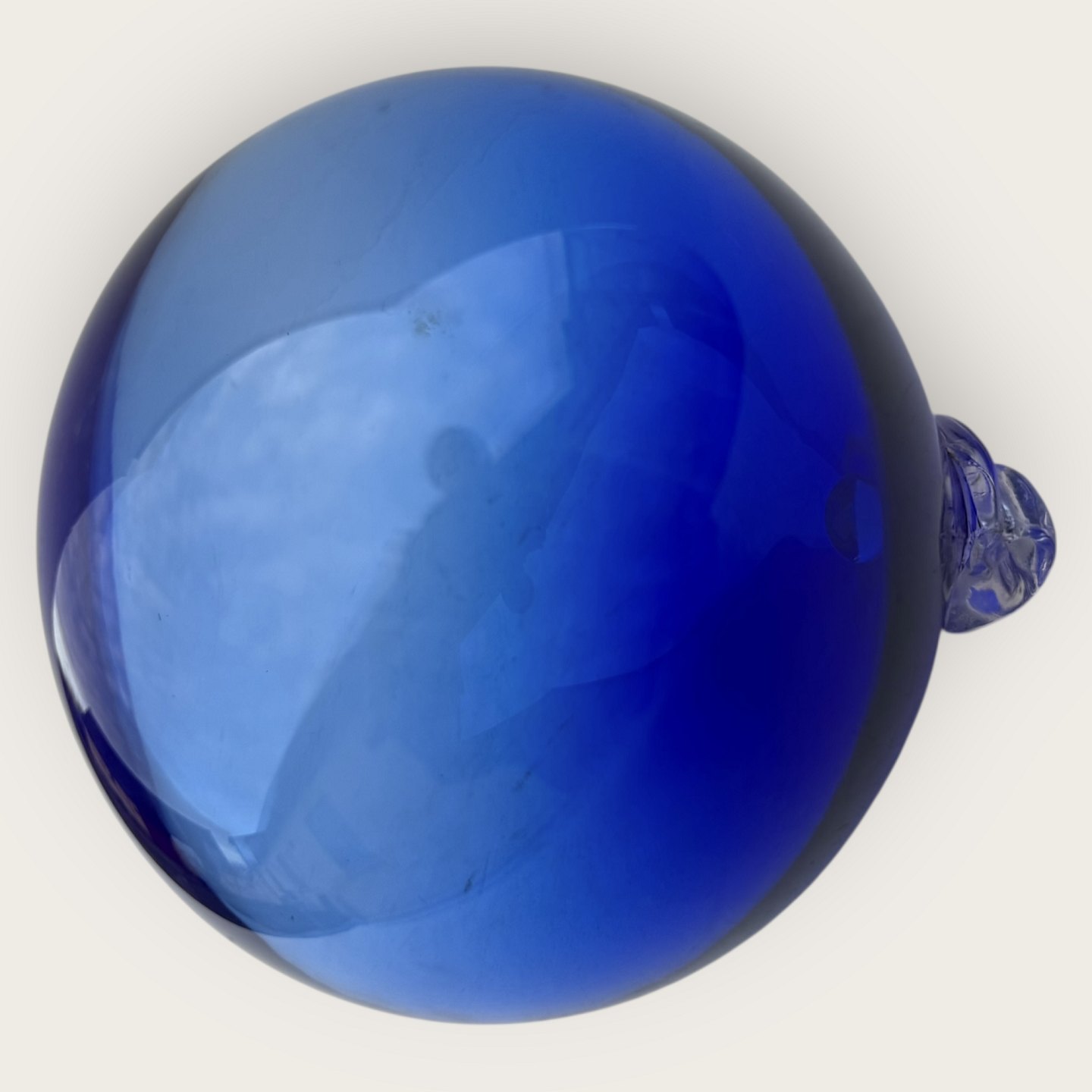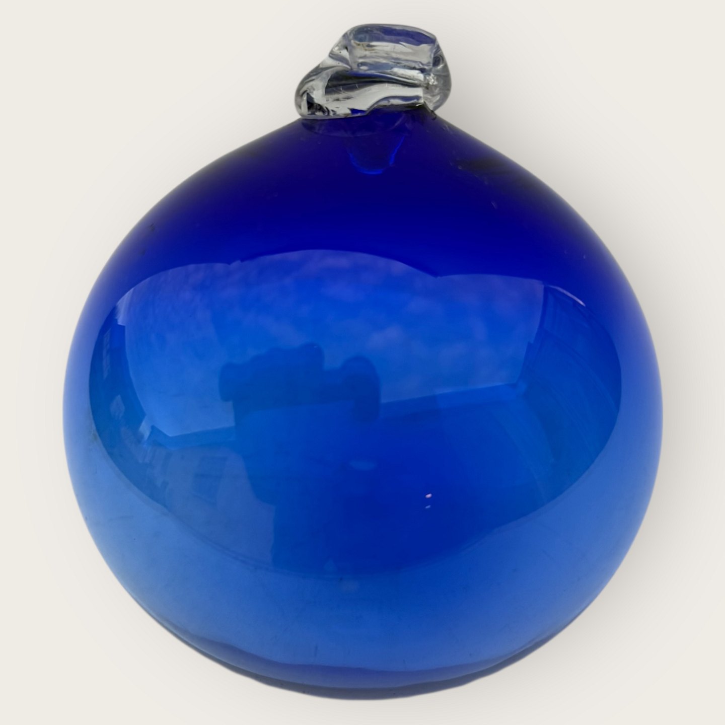 Blue glass ball for hanging or for use with Carnaby / Otto Bauer vases, possibly made at Holmegaard, Approx. 11 cm in diameter *Nice used condition*Stock: 1