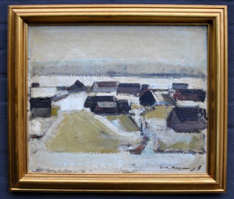 Kampmann, Jack (1914 - 1989) Denmark: Snow landscape, Faroe Islands. Oil on canvas. Signed. 38 x 48 cm.Framed: 48 x 57 cm.