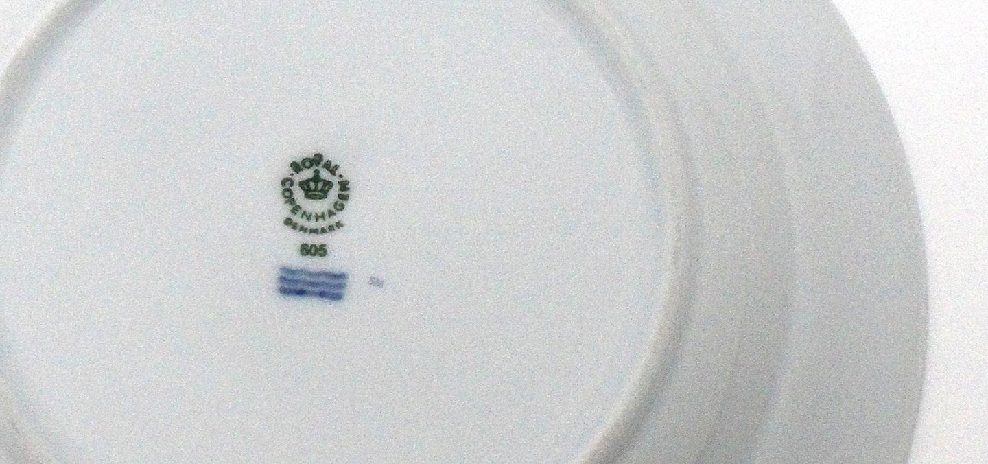 Royal Copenhagen, Blå Magnolia. Dyb tallerken. Blå marmoreret bort dekoreret med gylden blomsterknop. Designet af Flemming Eskildsen. Nr. 605. Diameter 22 cm. Højde 3,5 cm. I. sortering. Flot stand. Pris: 150 kr. stk. Lager: 4