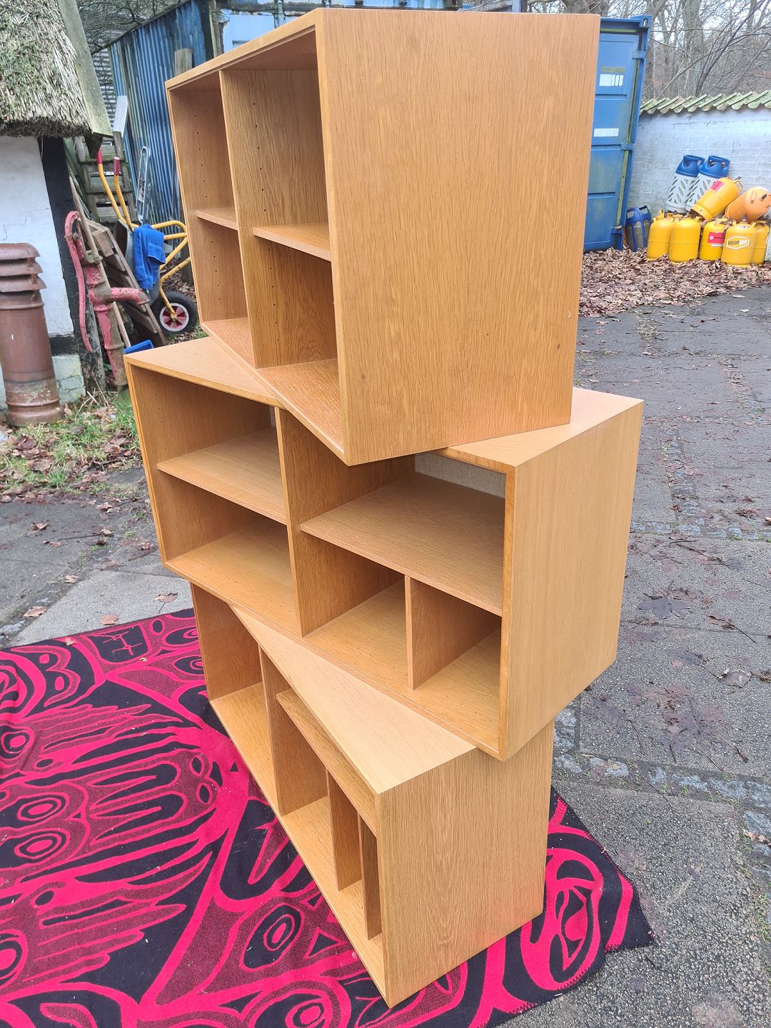 3 bogkasser i finéret eg og med hessian beklædt bagbeklædning. Ydført hos HG Funiture i 1970'erne. Fremstår pæne og velholdte uden de store brugsspor.