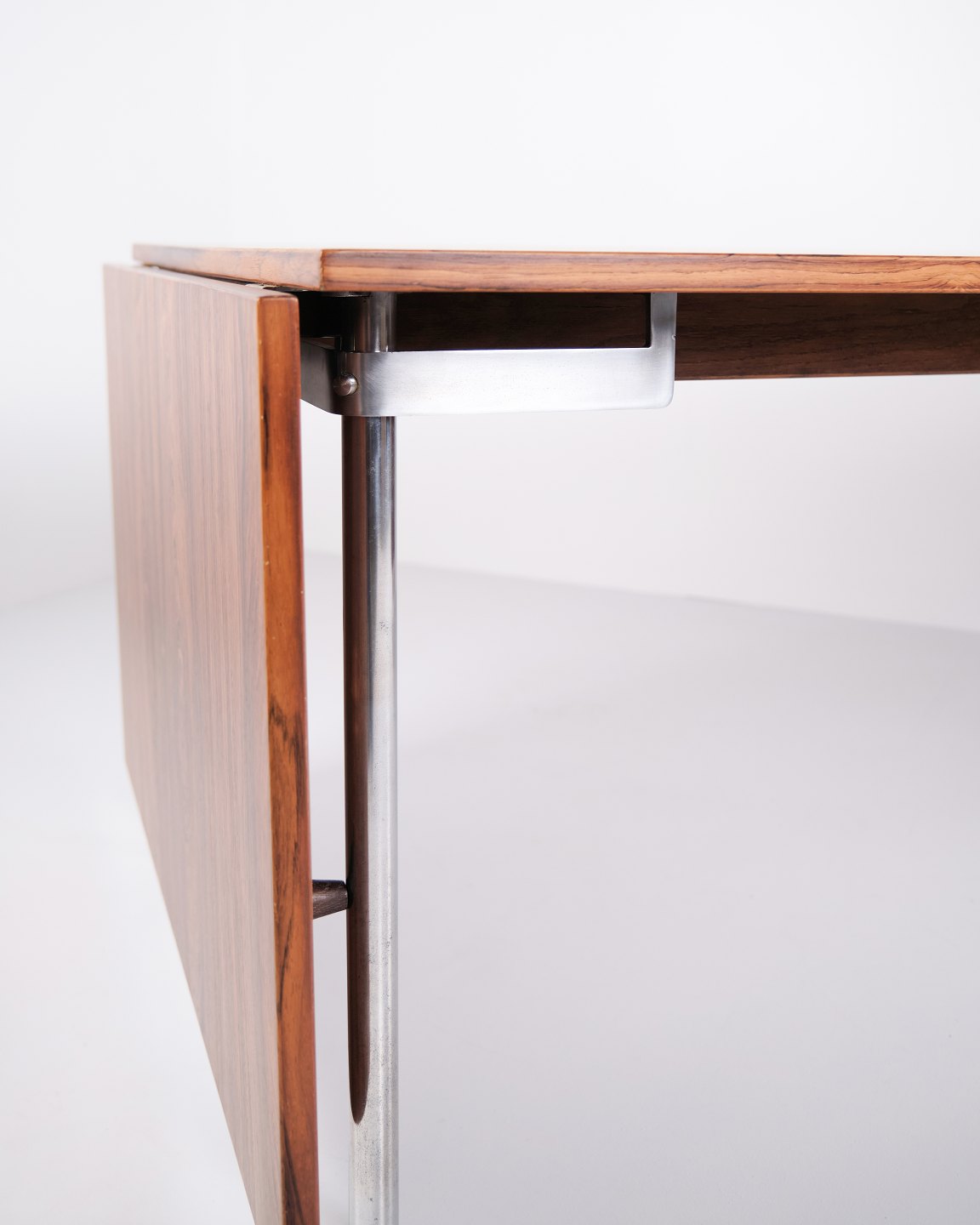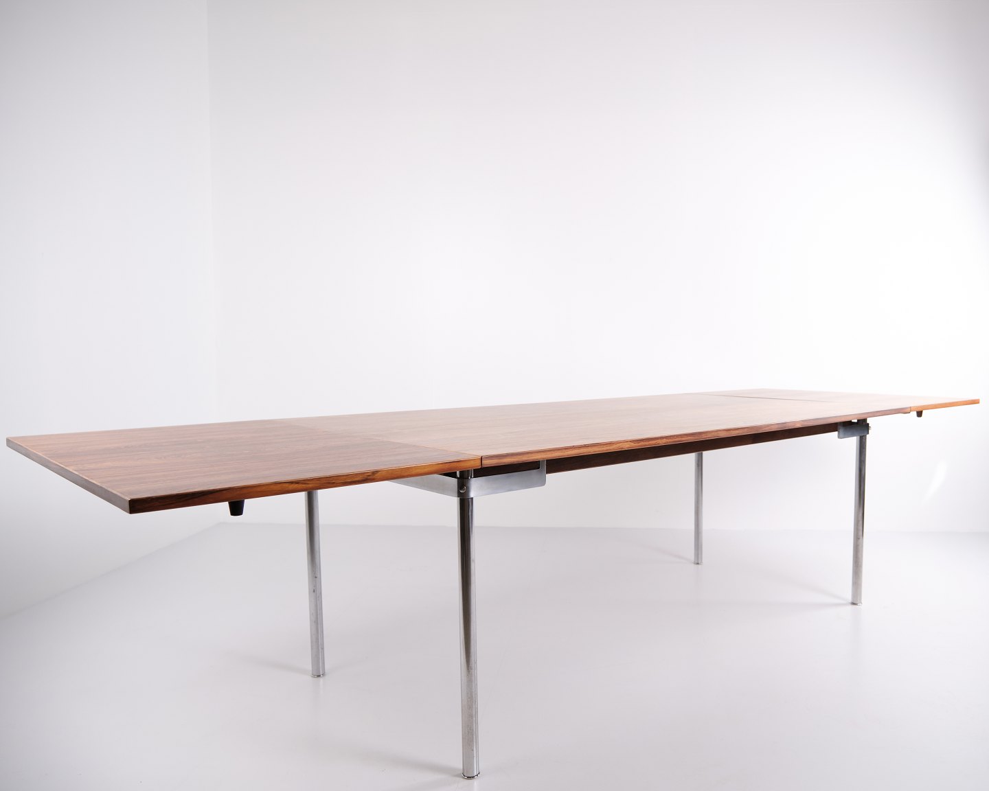 Dining table model AT 319 by Hans J. Wegner for Andreas Tuck. Rio rosewood with steel legs and 2 extension leaves. Danish design from the 1960s.— Designer: Hans J. Wegner