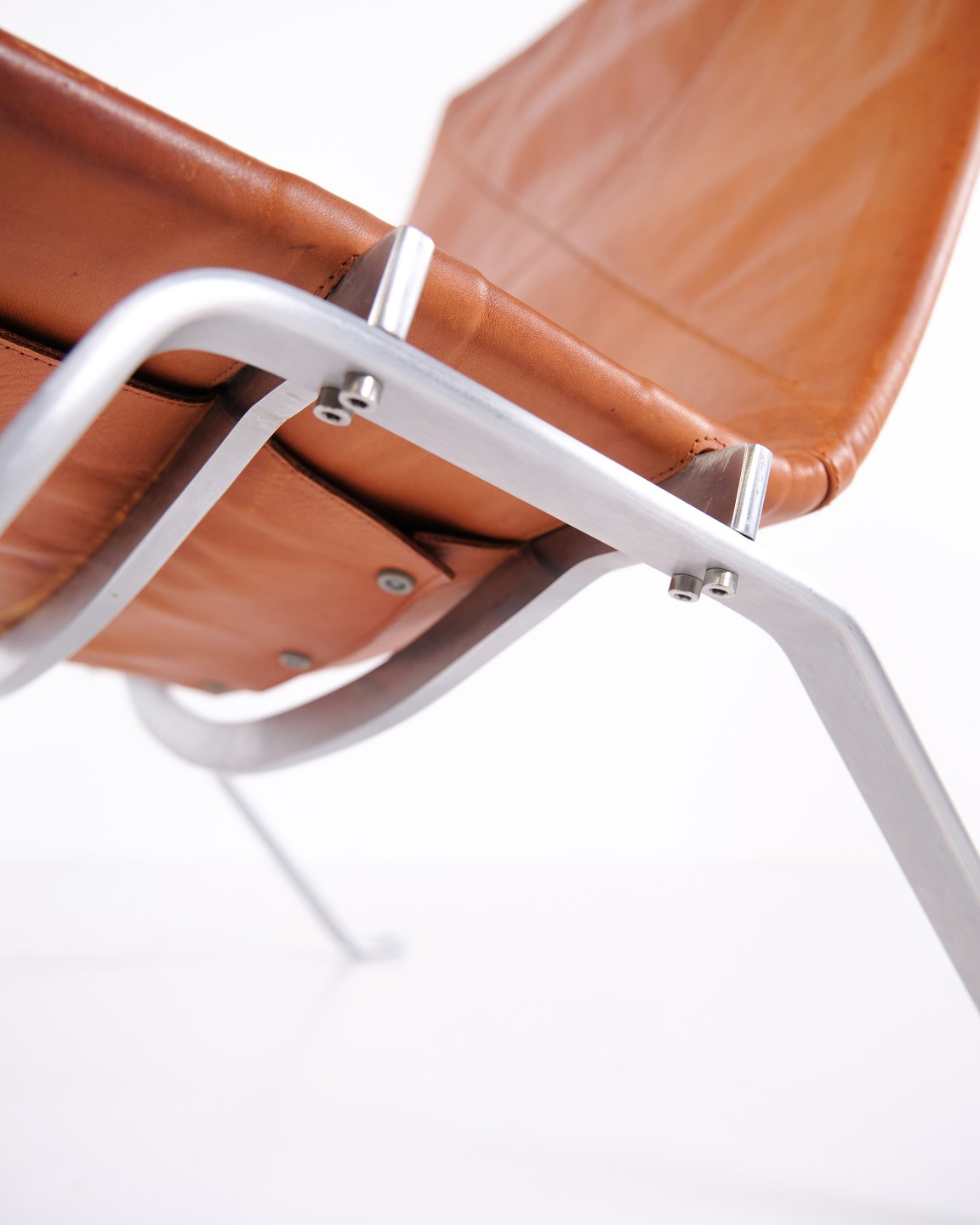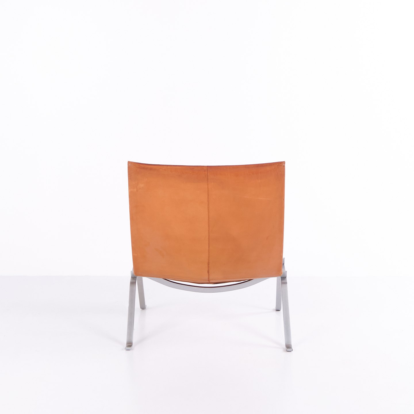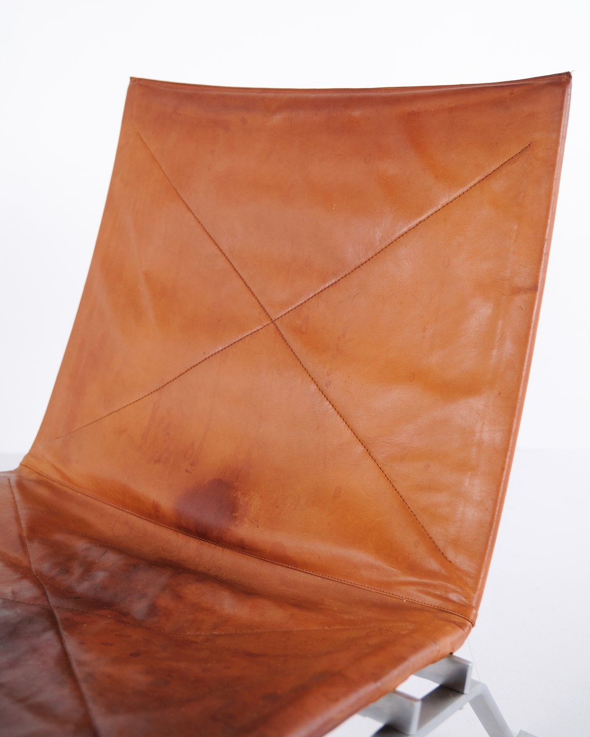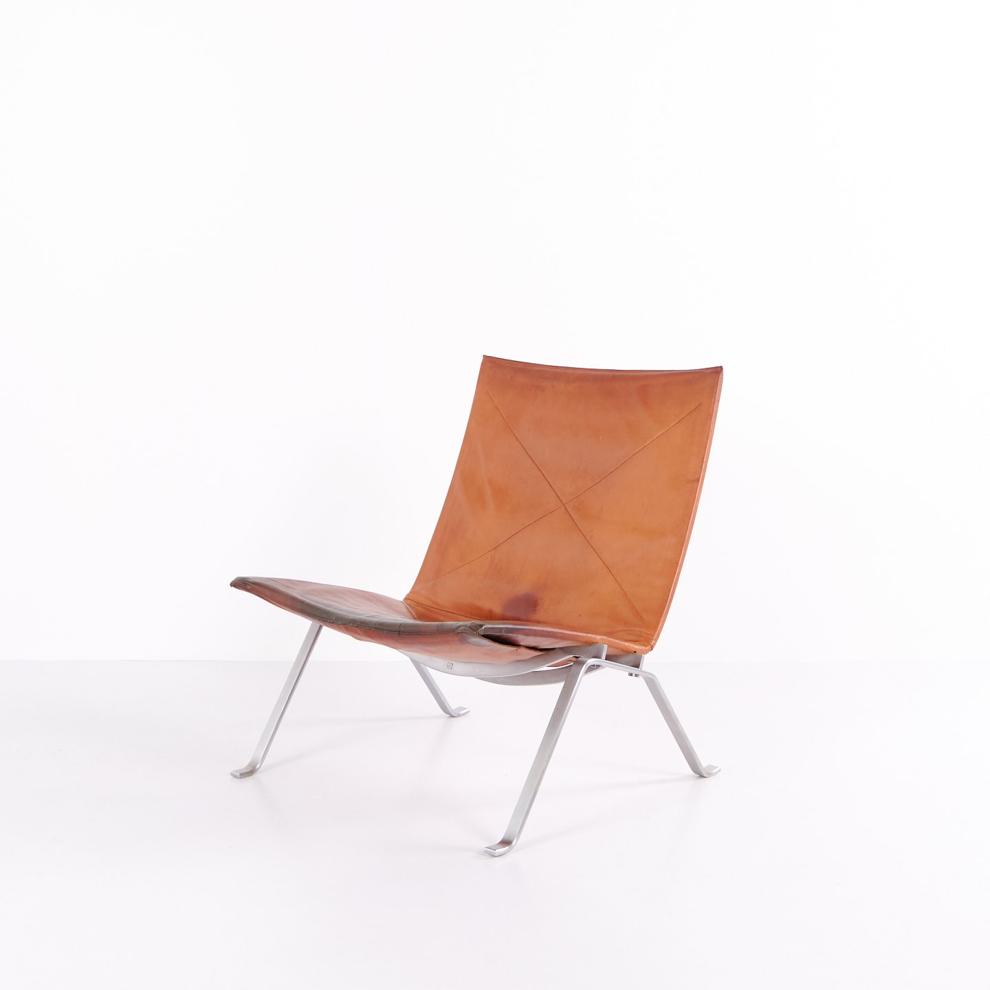 PK22 armchair by Poul Kjærholm for E. Kold Christensen. Original upholstery in patinated cognac leather. Danish design icon from the 1950s.— Designer: Poul Kjærholm
