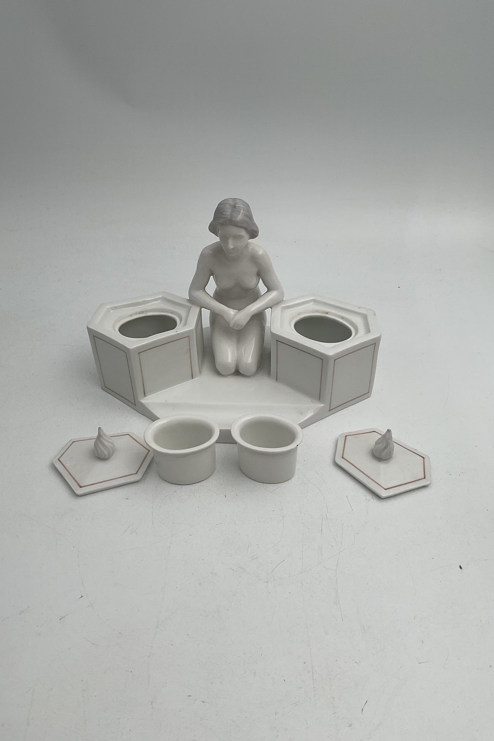 Bing and Grondahl Art Nouveau Inkwell Set with Girl No. 1556Measures 16,7cm x 9,6cm x 10cm / 6.57 inch x 3.78 inch x 3.94 inch