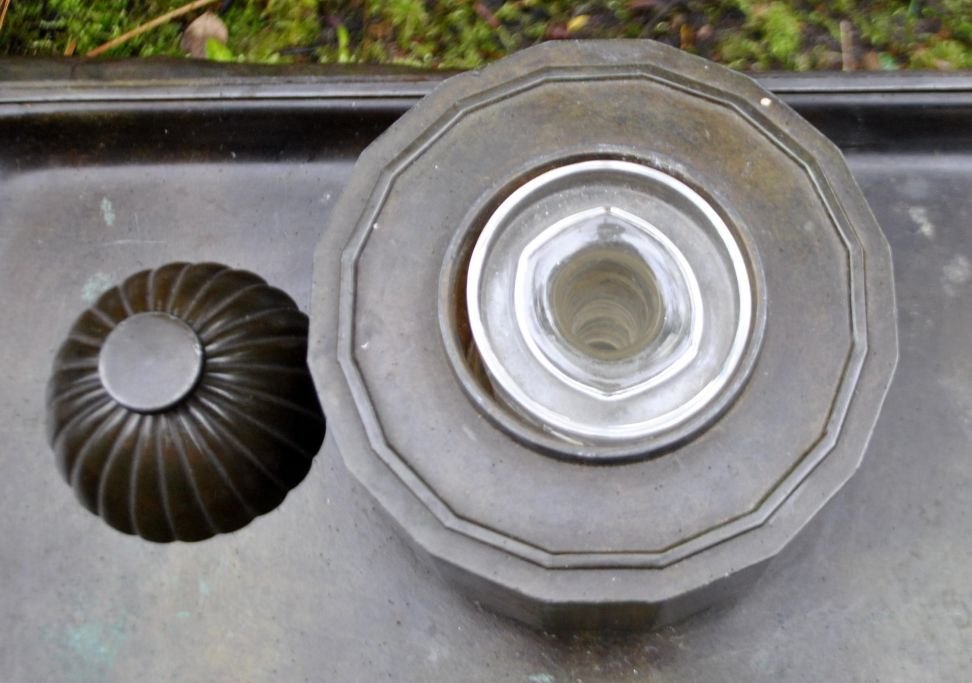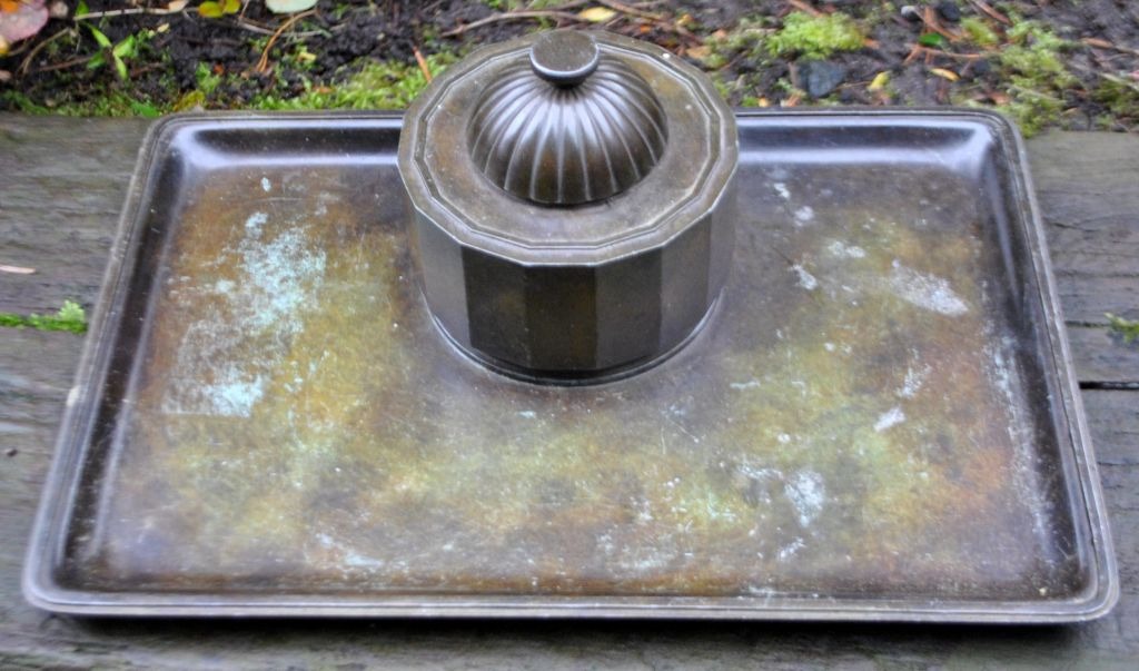Plate with inkwell in art deco style. In the inkwell there is a cup for ink with a lid (defective).