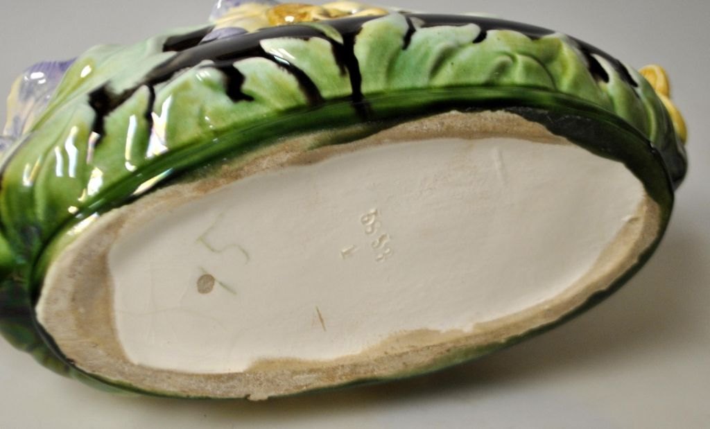 Majolica jardiniere, Germany, approx. 1900. Stamped at the bottom: 5853. H: 12 cm. L: 27 cm.
