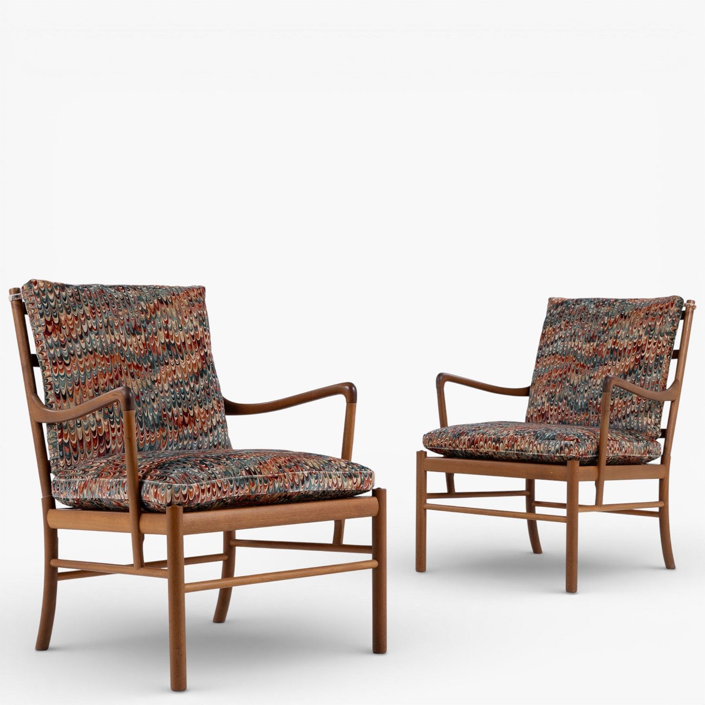PJ 149 - 'Colonial Chair' armchair in patinated mahogany with newly upholstered cushions in 'End Paper Velvet' fabric. Manufacturer's mark.