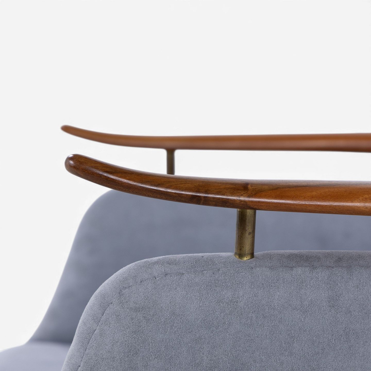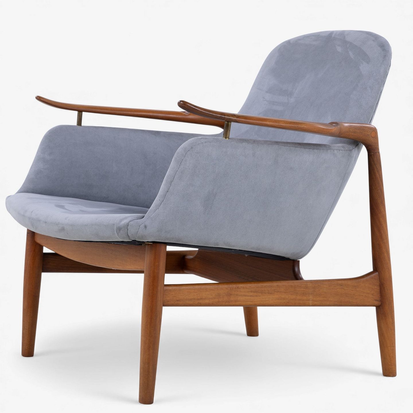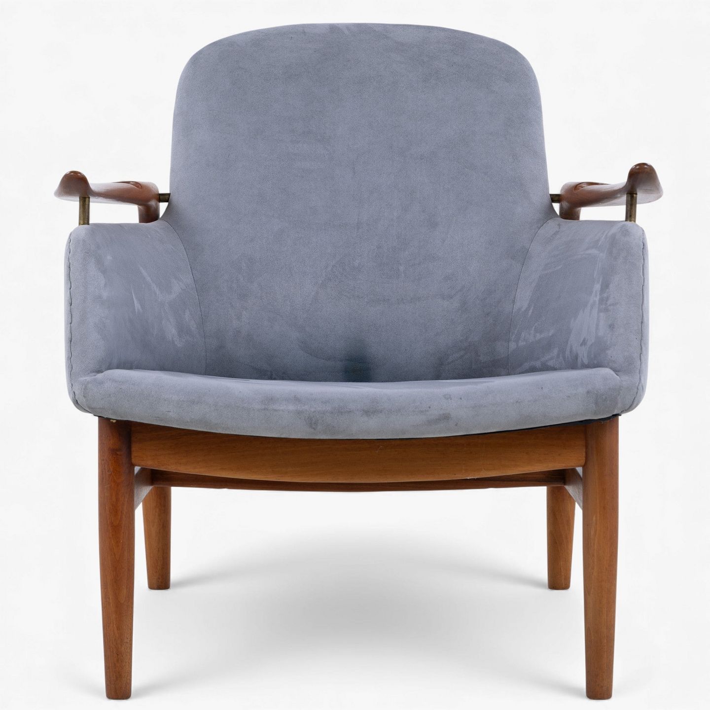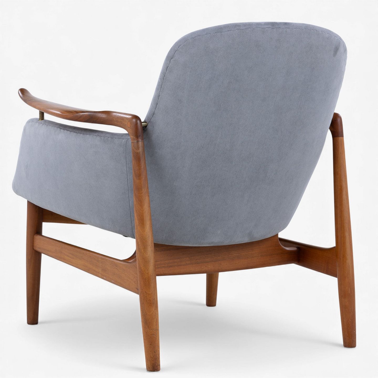 NV 53 - Armchair in grey 'Alcantara' fabric with frame in patinated walnut.